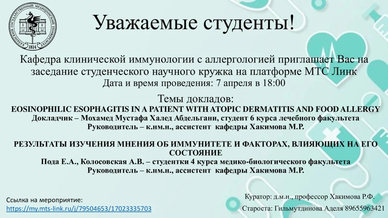 ЗАСЕДАНИЕ НАУЧНОГО КРУЖКА (7 АПРЕЛЯ 2026 ГОДА) Cсылка для подключения: https://my.mts-link.ru/j/79504653/17023335703