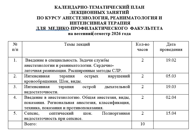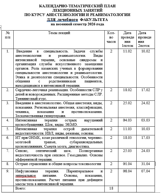 КАЛЕНДАРНО-ТЕМАТИЧЕСКИЙ ПЛАН ЛЕКЦИОННЫХ ЗАНЯТИЙ