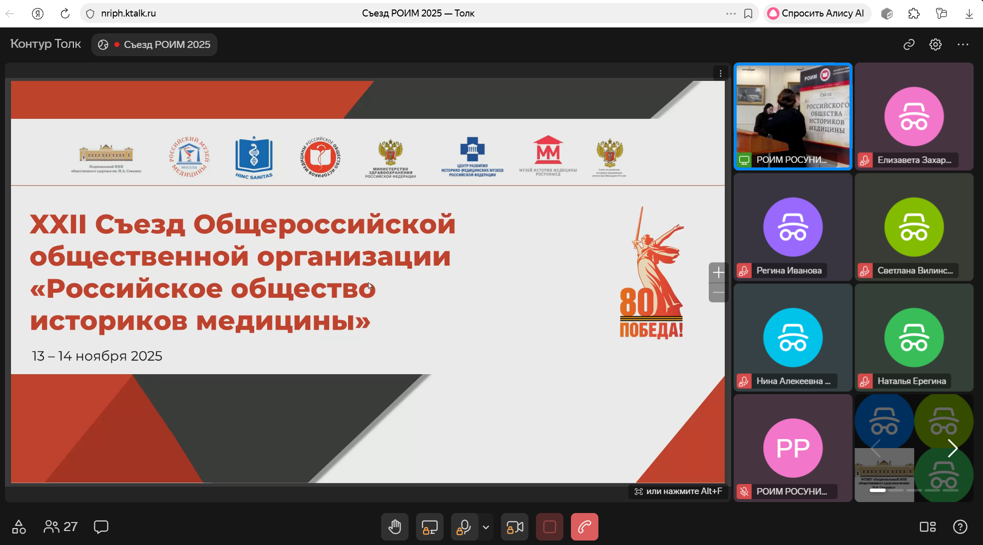 - Пленарное заседание XXII Съезда Общероссийской общественной организации «Российское общество историков медицины»;