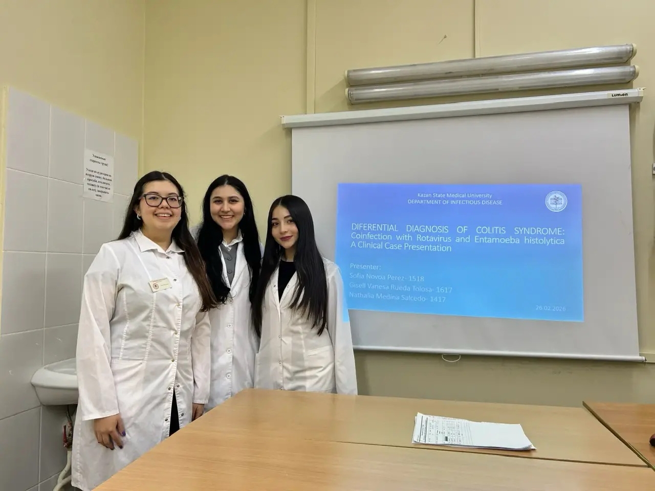 26 февраля 2026 года состоялось заседание СНК «Инфекционные болезни». С докладом на тему «Дифференциальная диагностика синдрома колита» выступили Руэда Толоса Джисель Ванеса 1617, Новоа Перес София 1518, Медина Сальседо Наталия 1417