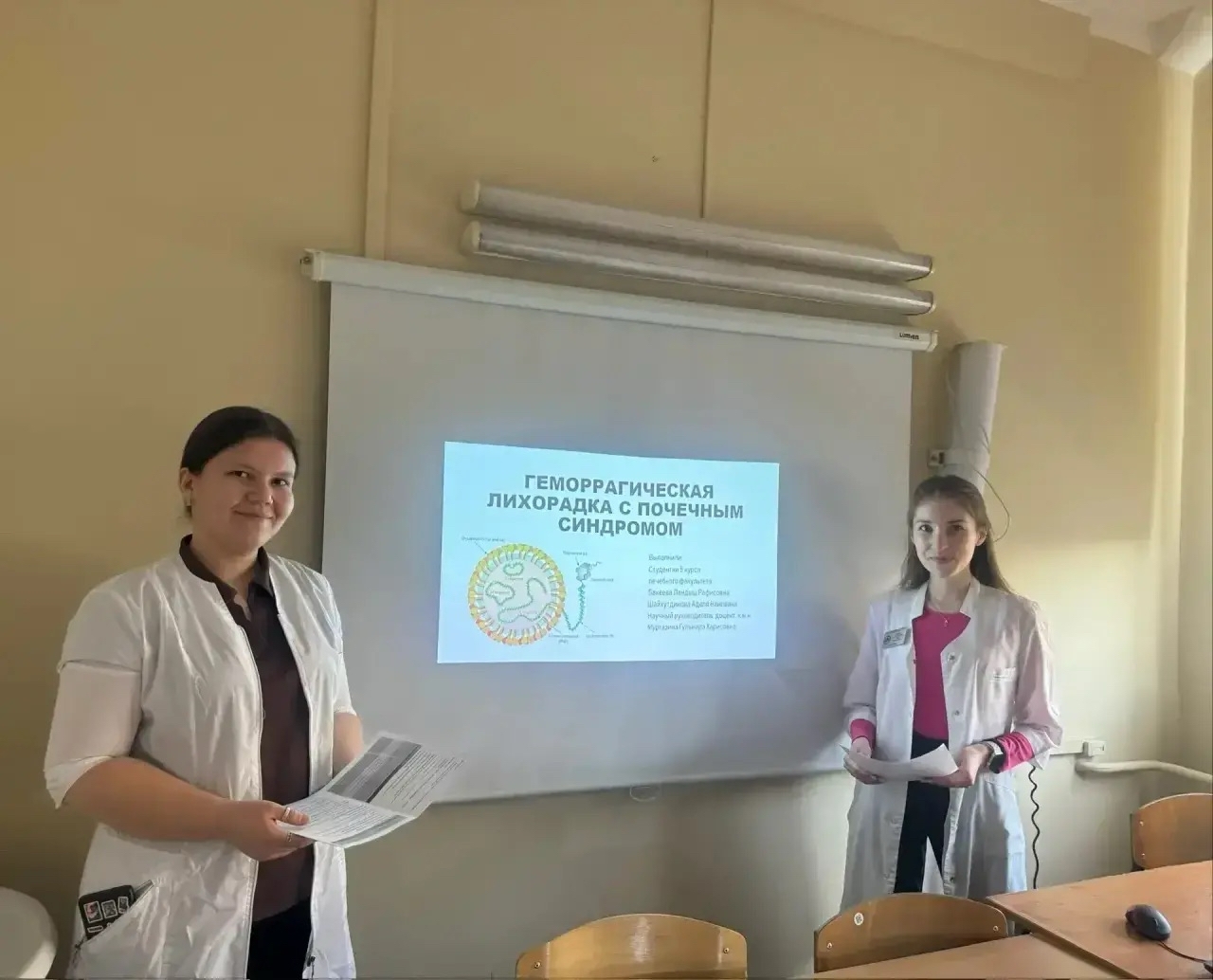 26 марта 2026 года состоялось заседание СНК «Инфекционные болезни». С докладом на тему «Геморрагическая лихорадка с почечным синдромом. Клинический случай» выступили студенты группы 1513 Шайхутдинова Аделя Наилевна и Бакеева Ландыш Рафисовна.