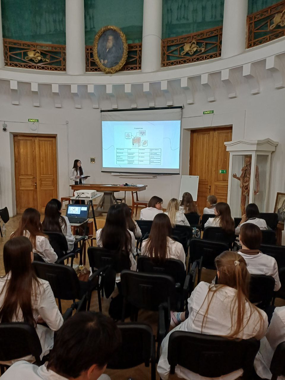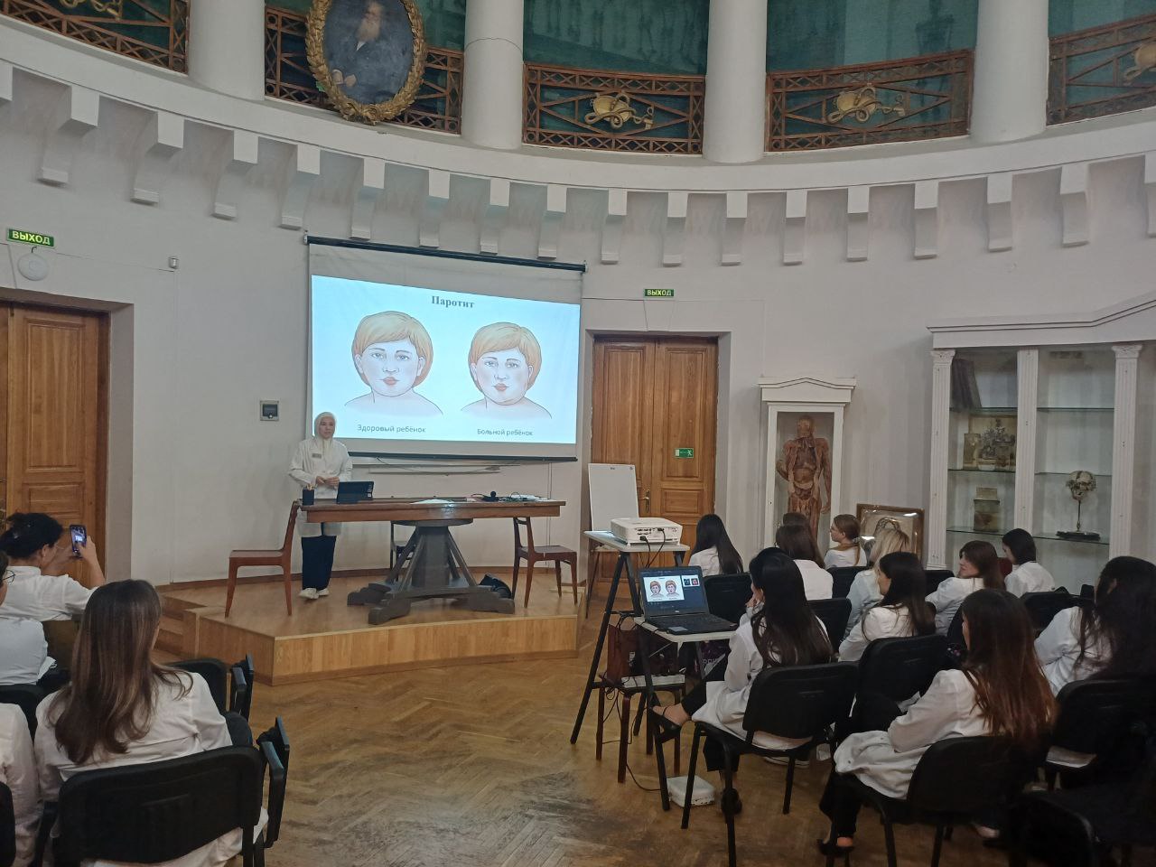 Сегодня состоялось заседание СНК посвященное чувствительной иннервации органов головы. На заседании выступала студентка группы 2204 Дания Харисова с темой «Паротит. Влияние на лицевой нерв». После неё студентка группы 4201 Карина Габдуллина рассказала о «Невралгии тройничного нерва и истории лечения невралгии». Далее про «Отит среднего уха» рассказал студент группы 1108 Илшатов И.И. В заключении доклад о «Феномене боли» прочитала студентка группы 1202 Анна Алексеева. Доклады, с которыми выступали студенты были клинически ориентированы и вызвали огромный интерес у слушателей.