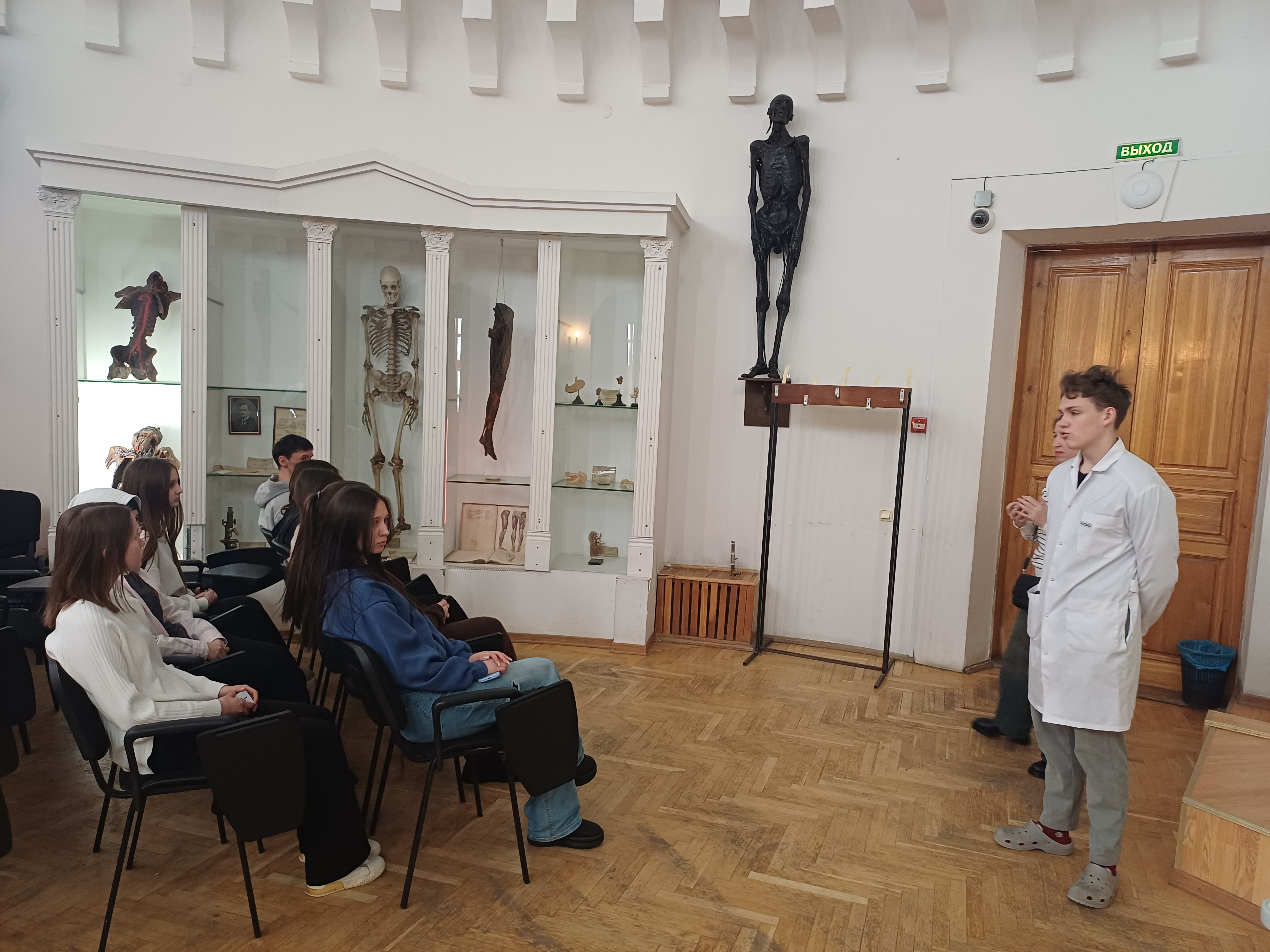 В воскресенье на кафедре анатомии прошел фестиваль "Ангелы в белых халатах". Кафедру посетили ученики 9 - 11 классов из школ районов республики. Фестиваль начался приветственным словом заведующего кафедрой, после чего староста кружка анатомии рассказал ученикам про историю анатомического театра. Далее была проведена экскурсия по учебным аудиториям и ученикам было предложено собрать скелет из предоставленных естественных анатомических препаратов.
