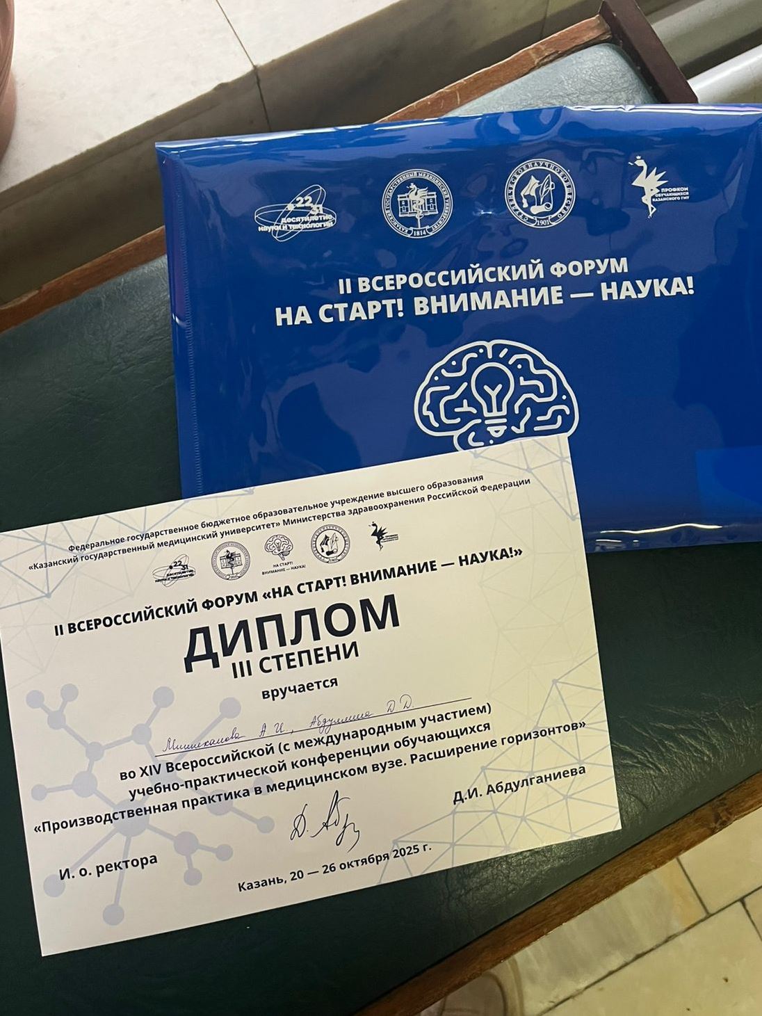 22-23 октября в г. Астрахани состоялся I Всероссийский форум с международным участием «Дельта возможностей - 2025». Студенты Казанского ГМУ заняли I места в номинациях «Гистерорезектоскопическая полипэктомия», «Оказание пособия в родах» и II место в общекомандном зачете. И.о. ректора Астраханского ГМУ Поройский С.В. и заведующий кафедрой акушерства и гинекологии Синчихин С.П. поздравили команду и выразили благодарность нашему ВУЗу за отличную подготовку студентов. Команду студентов возглавляла руководитель СНК кафедры акушерства и гинекологии доцент Ибрагимова А.Р.
