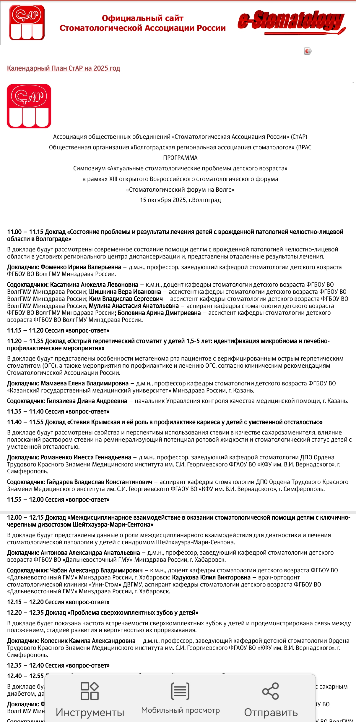 15 октября 2025 г. в городе-герое Волгоград состоялся симпозиум "Актуальные стоматологические проблемы детского возраста" в рамках XIII открытого Всероссийского стоматологического форума "Стоматологический форум на Волге". В работе которого приняла участие и наша кафедра - с докладом "Острый герпетический стоматит у детей 1,5- 5 лет: идентификация микробима и лечебно-профилактические мероприятия" выступила д.м.н., профессор Мамаева Е.В.