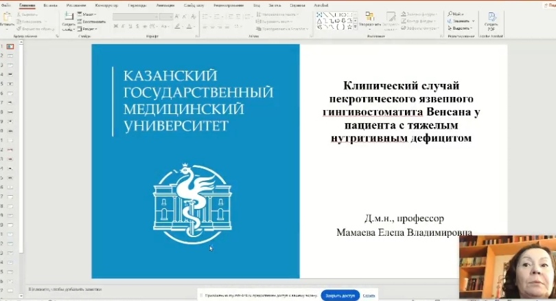 Кафедра стоматологии приняла участие во Всероссийской научно-практической конференции с международным участием "Здоровье человека в XXI веке. Качество жизни". С докладом выступила д.м.н., профессор Мамаева Е.В. "Клинический случай некротического язвенного гингивостоматита Венсана у пациента с тяжелым нутритивным дефицитом" Доступ: https://cloud.kazangmu.ru/index.php/s/acg4waSgKZF2RZ8