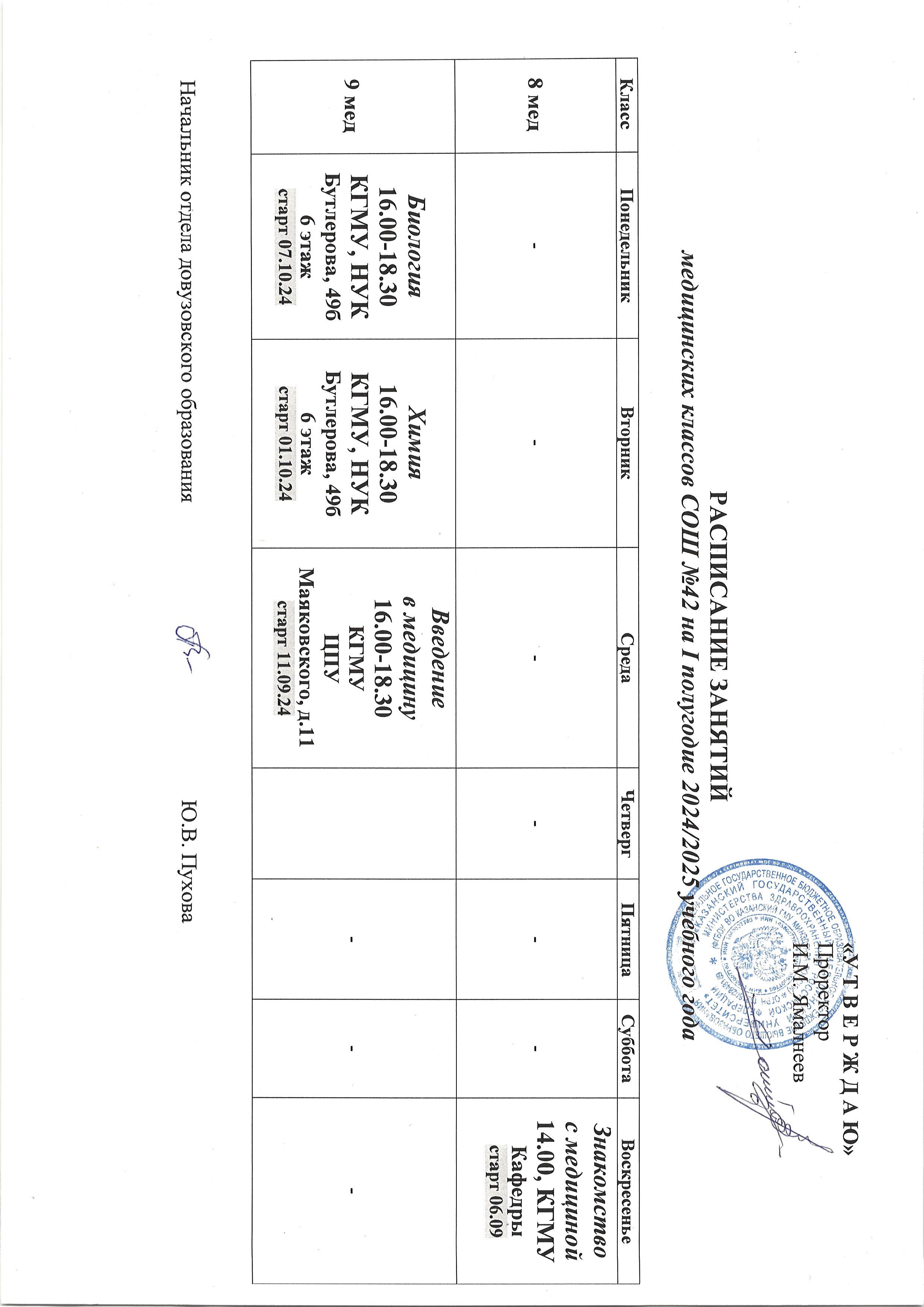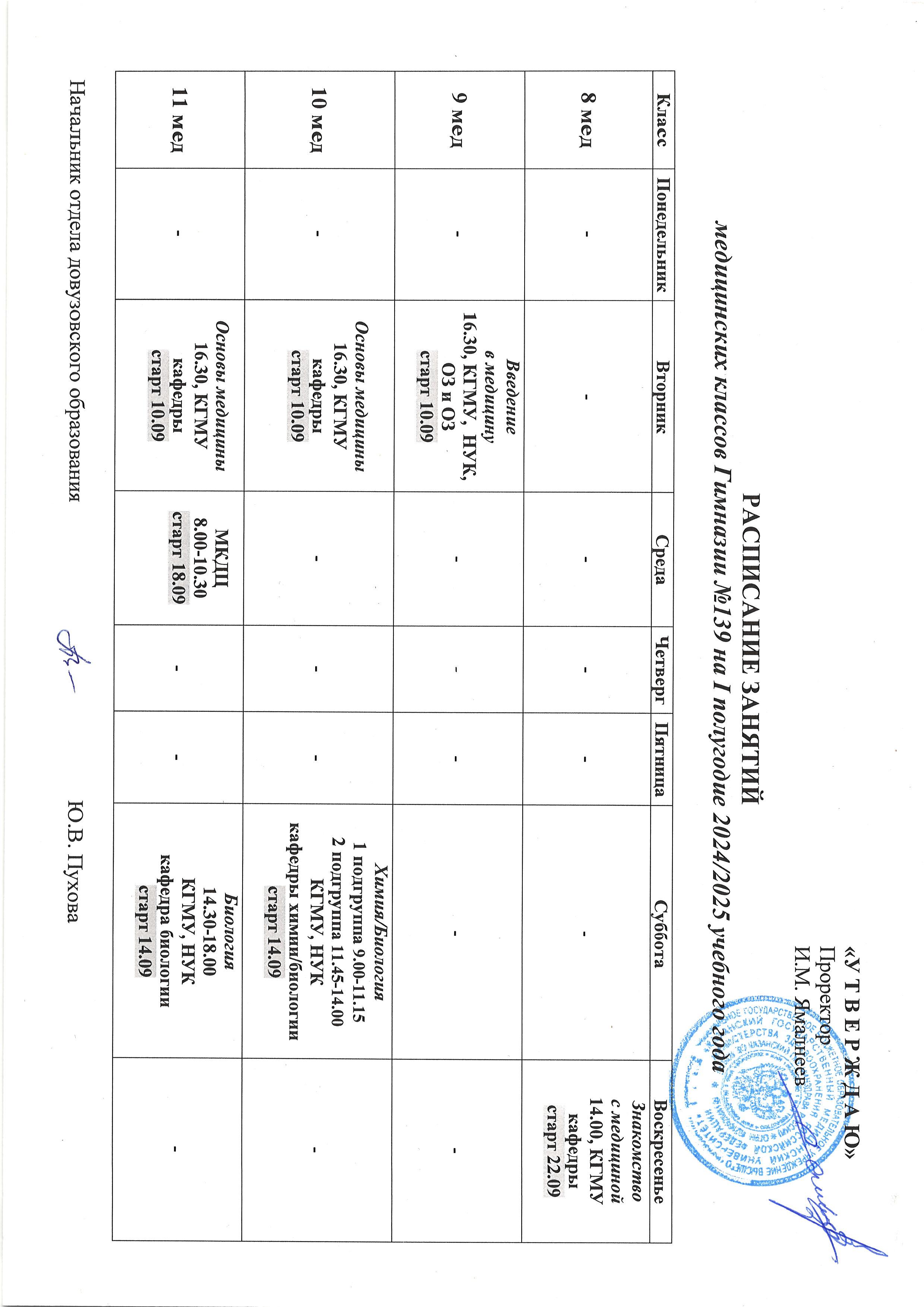 РАСПИСАНИЕ ЗАНЯТИЙ В 2024-2025 УЧЕБНОМ ГОДУ