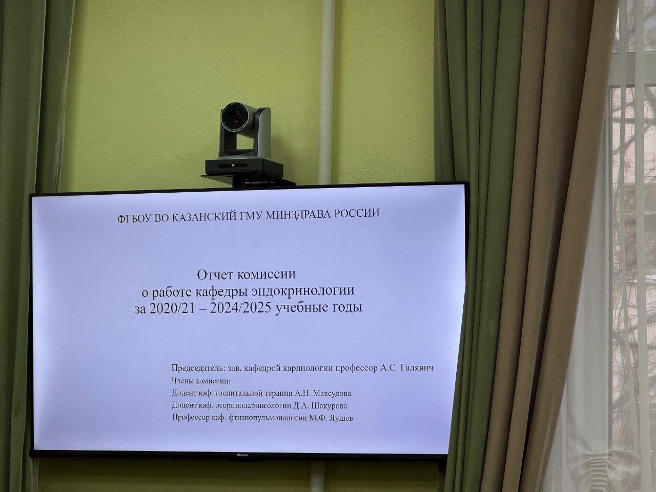 Комиссия в составе - председатель: зав каф кардиологии, профессор А.С. Галявич, члены комиссии доцент каф. госпитальной терапии А.Н. Максудова, доцент каф. оториноларингологии Д.А. Шакурова, профессор каф. фтизиопульмонологии М.Ф. Яушев представили отчет проверки о работе кафедры за 2020/21-2024\25 учебные годы.