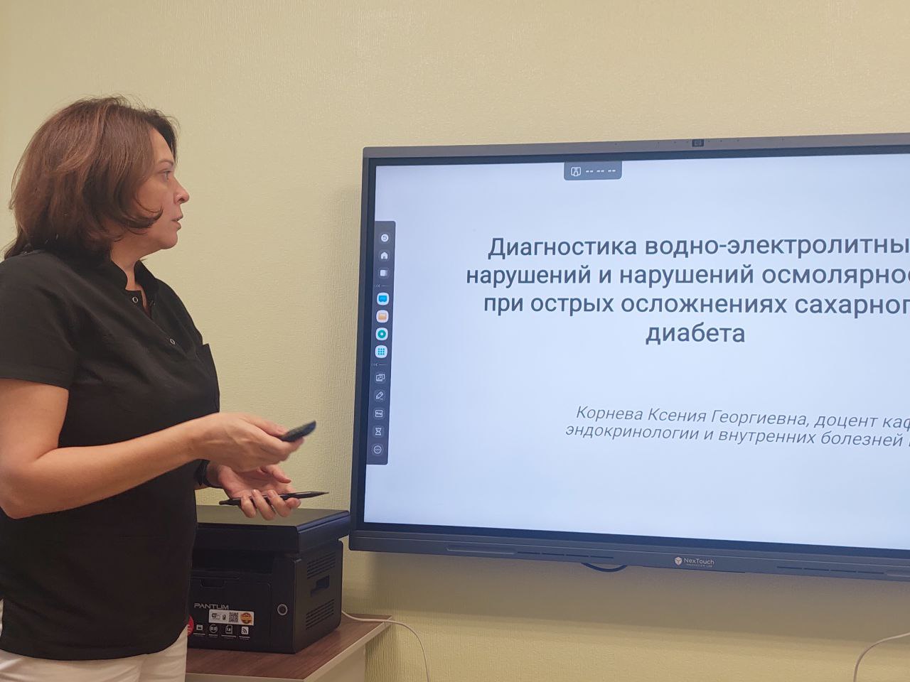 С 19.11.2025 по 21.11.2025 на базе кафедры эндокринологии и внутренних болезней ПИМУ состоялась научно-практическая стажировка «Кетоацидоз» для ординаторов кафедры эндокринологии Казанского ГМУ во главе с доцентом кафедры эндокринологии, к.м.н. Зульфией Раисовной Алиметовой.