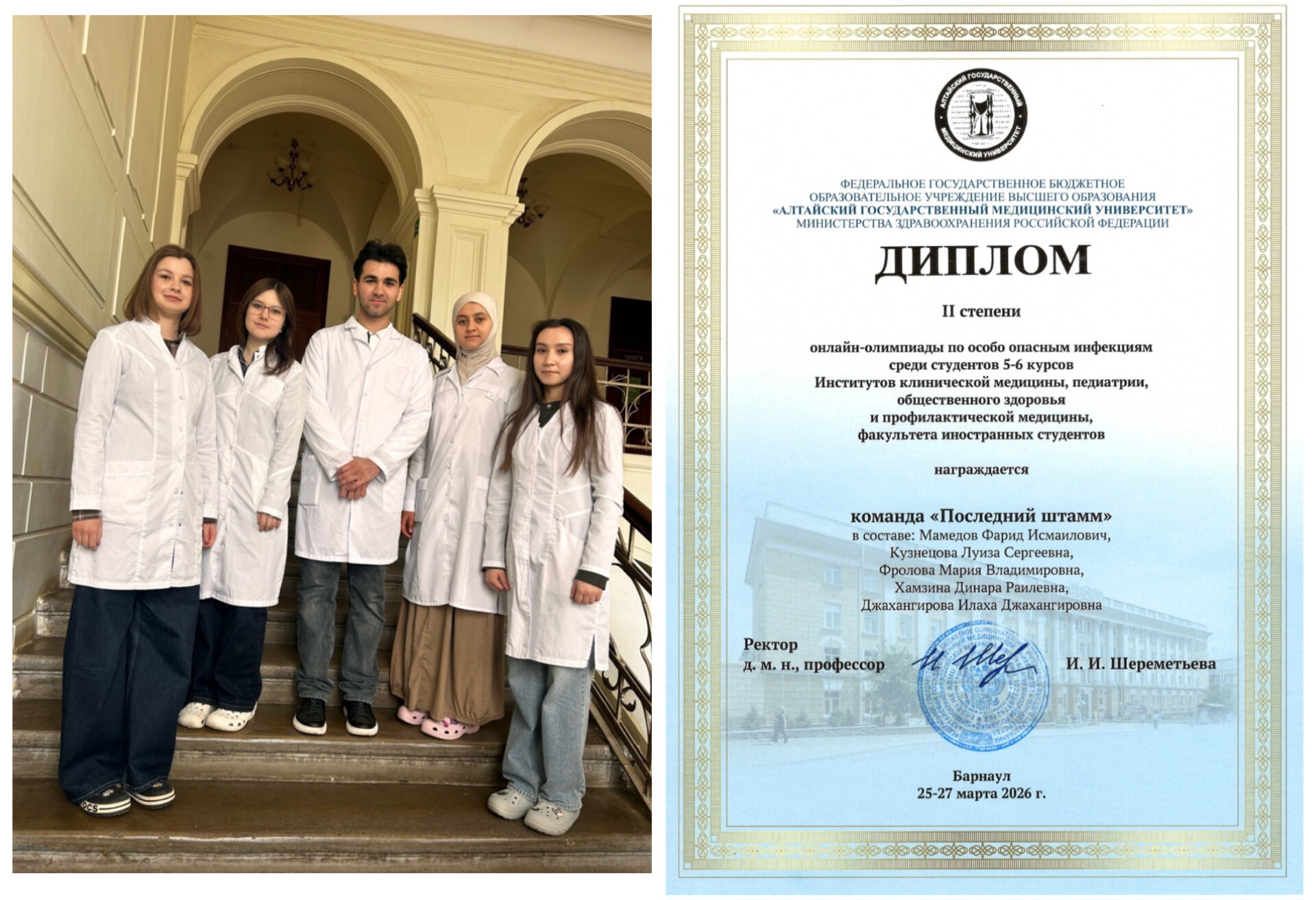 25-27 марта 2026 г на базе кафедры эпидемиологии Алтайского ГМУ состоялась межвузовская онлайн-олимпиада, посвященная проблемам особо опасных инфекций. В Олимпиаде приняли участие 7 команд из медицинских вузов России и Республики Беларусь.