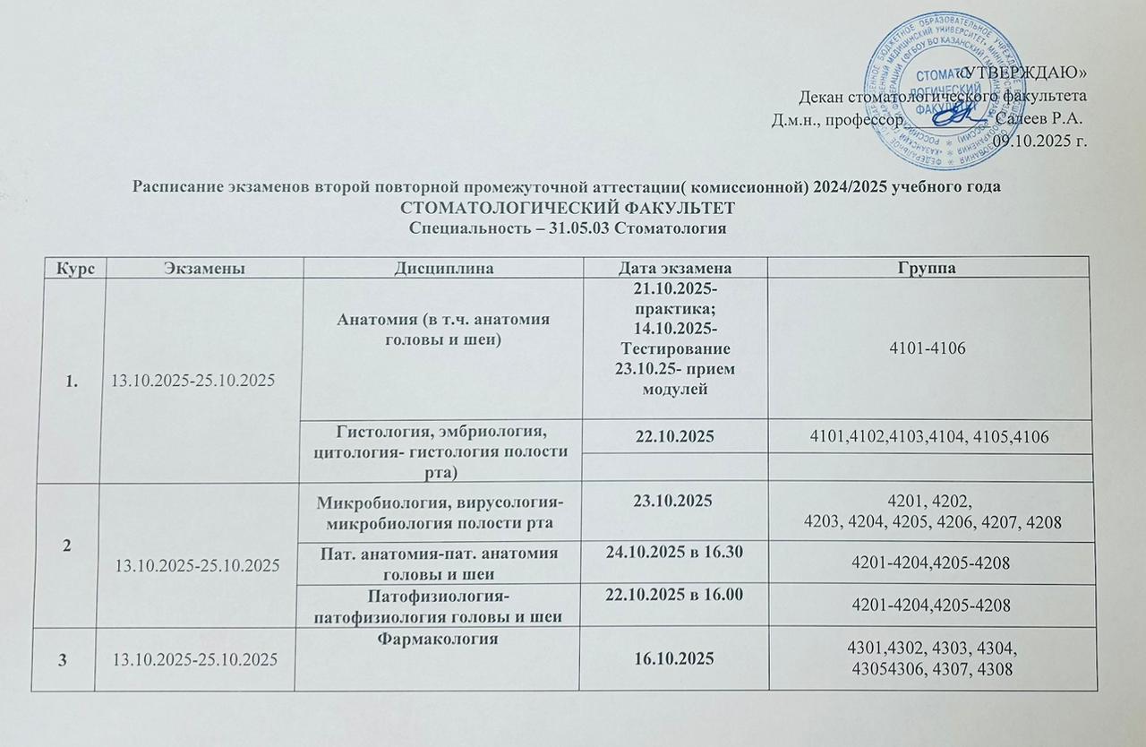 Внимание! Студентам стоматологического факультета, имеющим академическую задолженность- неудовлетворительные результаты промежуточной аттестации или непрохождение промежуточной аттестации при отсутствии уважительных причин по итогам весеннего семестра 2024/25 учебного года, нужно ликвидировать ее в срок с 13 октября по 25 октября 2025 года.