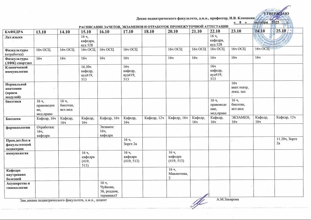 Списки групп с 1 по 6 курс педиатрического факультета 25/26