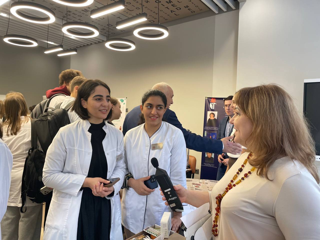 Особый восторг и интерес у ребят вызвали исследования шума. Куратор СНК «Общая гигиена» наглядно показывала и предлагала провести измерение силы звука от общего шума в аудитории с помощью шумомера, рассказывала, особенности негативного влияния шума на здоровье человека и окружающую среду. Куратор СНК «Актуальны вопросы профилактической медицины» предлагала студентам-первокурсникам и школьникам принять участие в Интеллектуальных играх: ребята с азартом решали кроссворды и интересные задачи в области профилактической медицины, проверяя свою эрудицию и смекалку! Гостям ярмарки в доходчивой форме рассказывали об особо значимых факторах риска развития хронических неспецифических заболеваний. Такие мероприятия — это прекрасная возможность проявить свои исследовательские навыки, зарядиться мотивацией и передать научную эстафету подрастающему поколению!