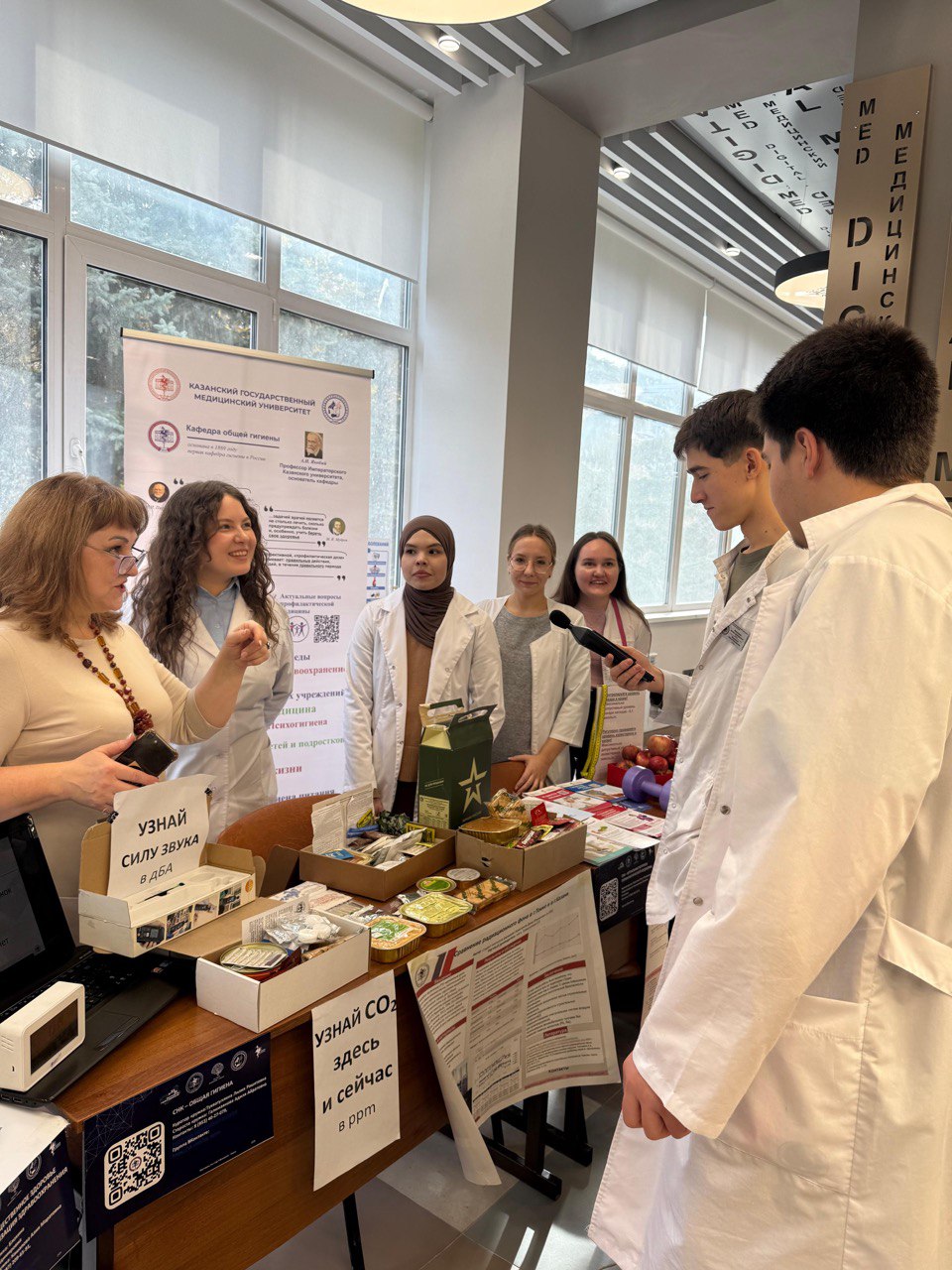 25–26 октября 2025 г в Казанском ГМУ состоялось яркое и вдохновляющее событие - мотивационно-ознакомительная «Ярмарка науки» в рамках форума «На старт! Внимание – Наука!» Нашими главными гостями стали студенты-первокурсники и школьники, которые с горящими глазами погружались в мир научных исследований и открытий! ️В этом году в "Ярмарке науки"от нашей кафедры впервые участвовали два научных кружка: «Общая гигиена» и «Актуальные вопросы профилактической медицины». Кураторы наших СНК – преподаватели кафедры Л.Р. Тухватуллина и О.В. Кошелева совместно со старостами СНК Адилей Галимзяновой и Алией Зайнетдиновой, студентами активистами Анастасией Бикчентаевой, Элиной Черноуховой, Ильвиной Нуриевой и Верой Кузнецовой делились своим опытом в проведении научных исследований, выступлений на заседаниях СНК и научных конференциях, показывая, что наука — это увлекательная и неотъемлемая часть учебного процесса!