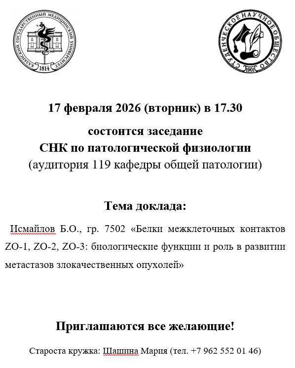 Добро пожаловать на студенческий научный кружок по патологической физиологии!