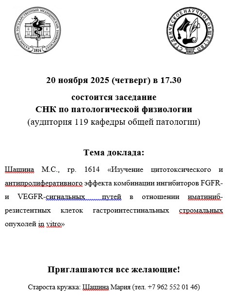 Староста СНО Патофизиологии: Шашина Мария (аккаунт вконтакте)