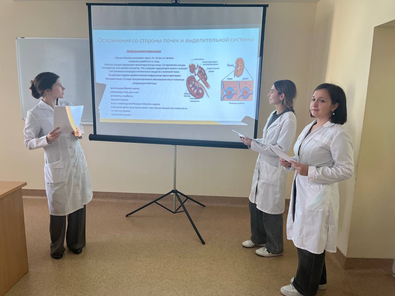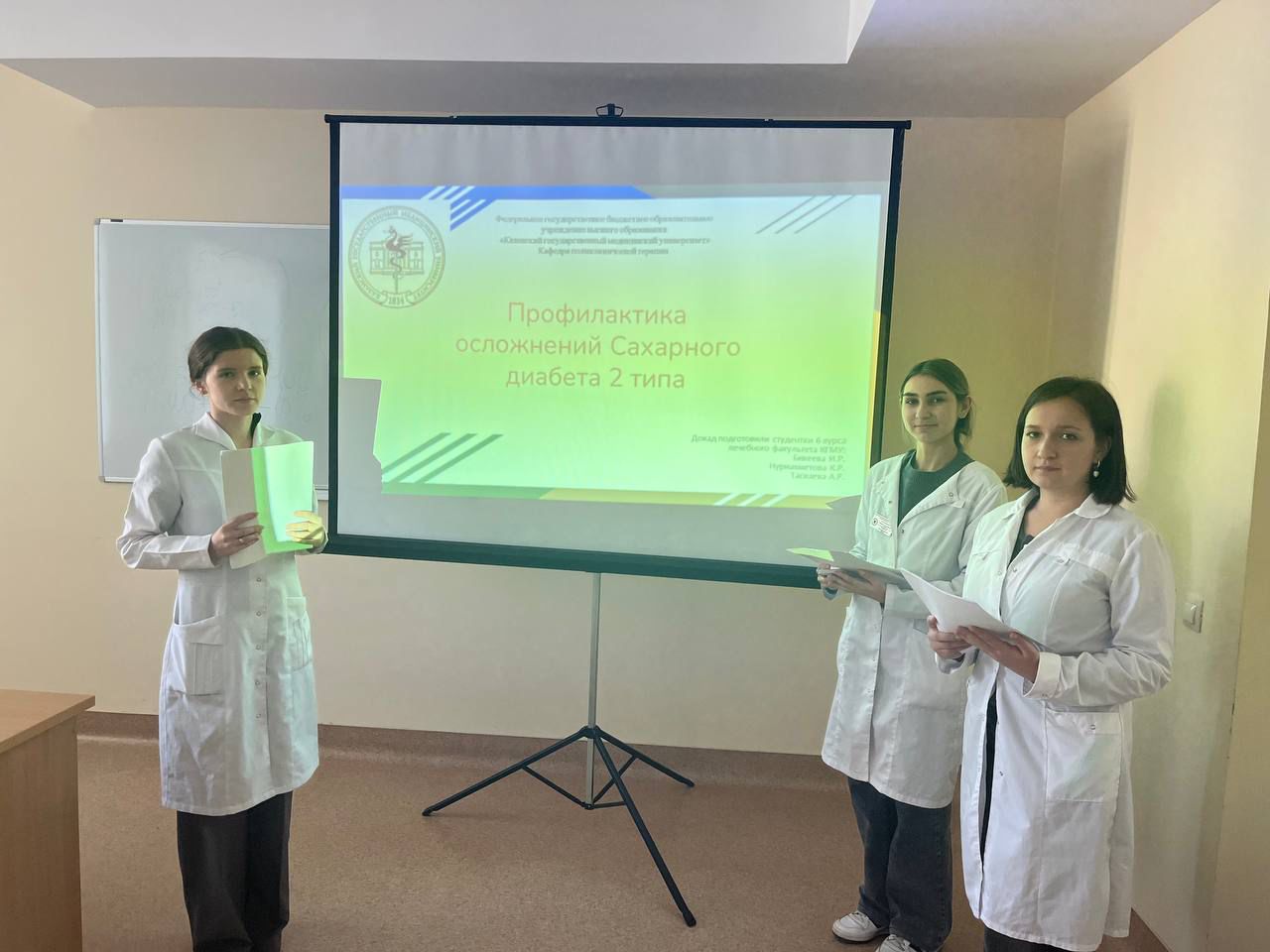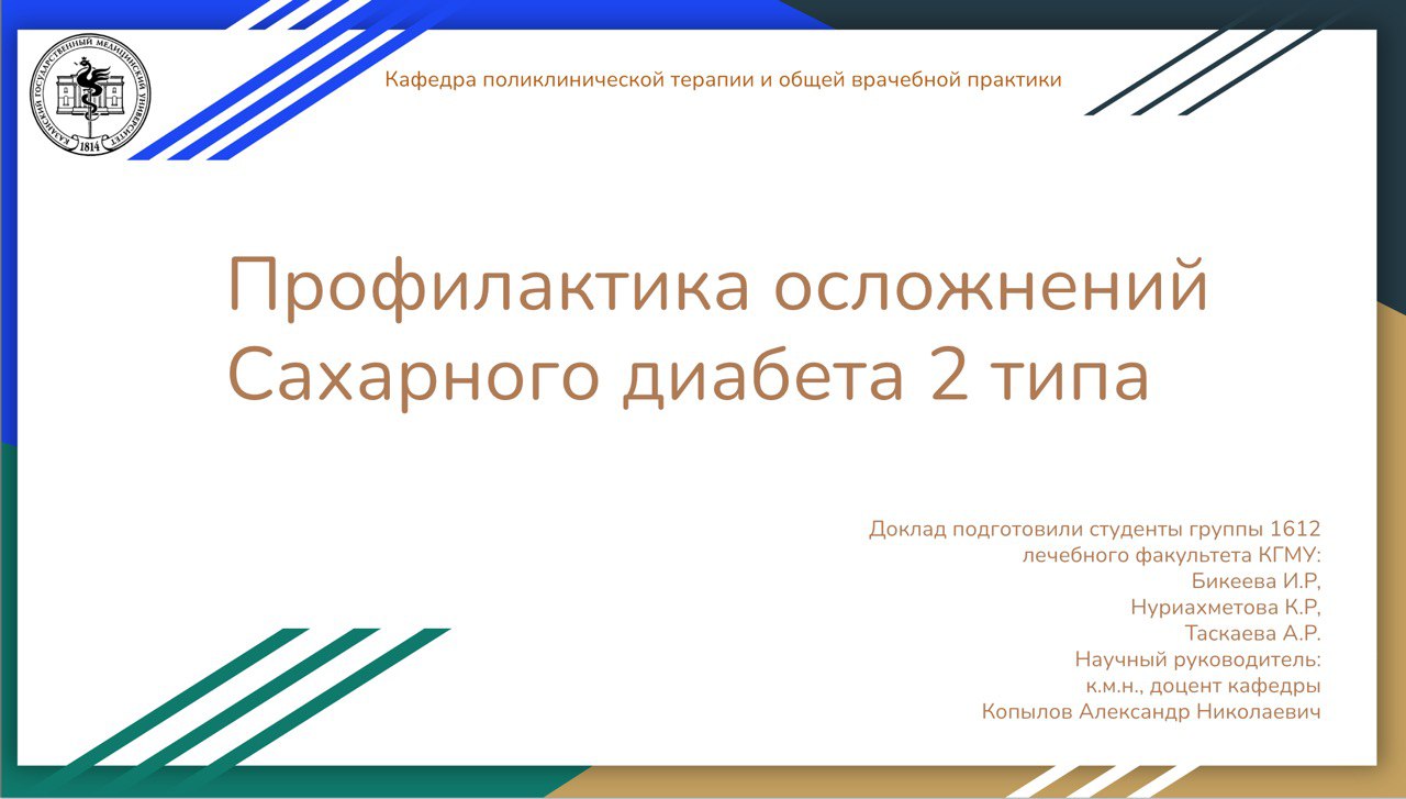 13 октября 2025 г. студентами группы 1612 Таскаевой Аидой, Бикеевой Ильмирой и Нуриахметовой Камилой под руководством профессора А.Н. Копылова была проведена школа здоровья на тему: "Профилактика осложнений сахарного диабета 2 типа" на базе ГАУЗ "Городская поликлиника №7". Участники школы узнали о возможных осложнениях сахарного диабета и о методах их профилактики, смогли задать интересующие их вопросы.