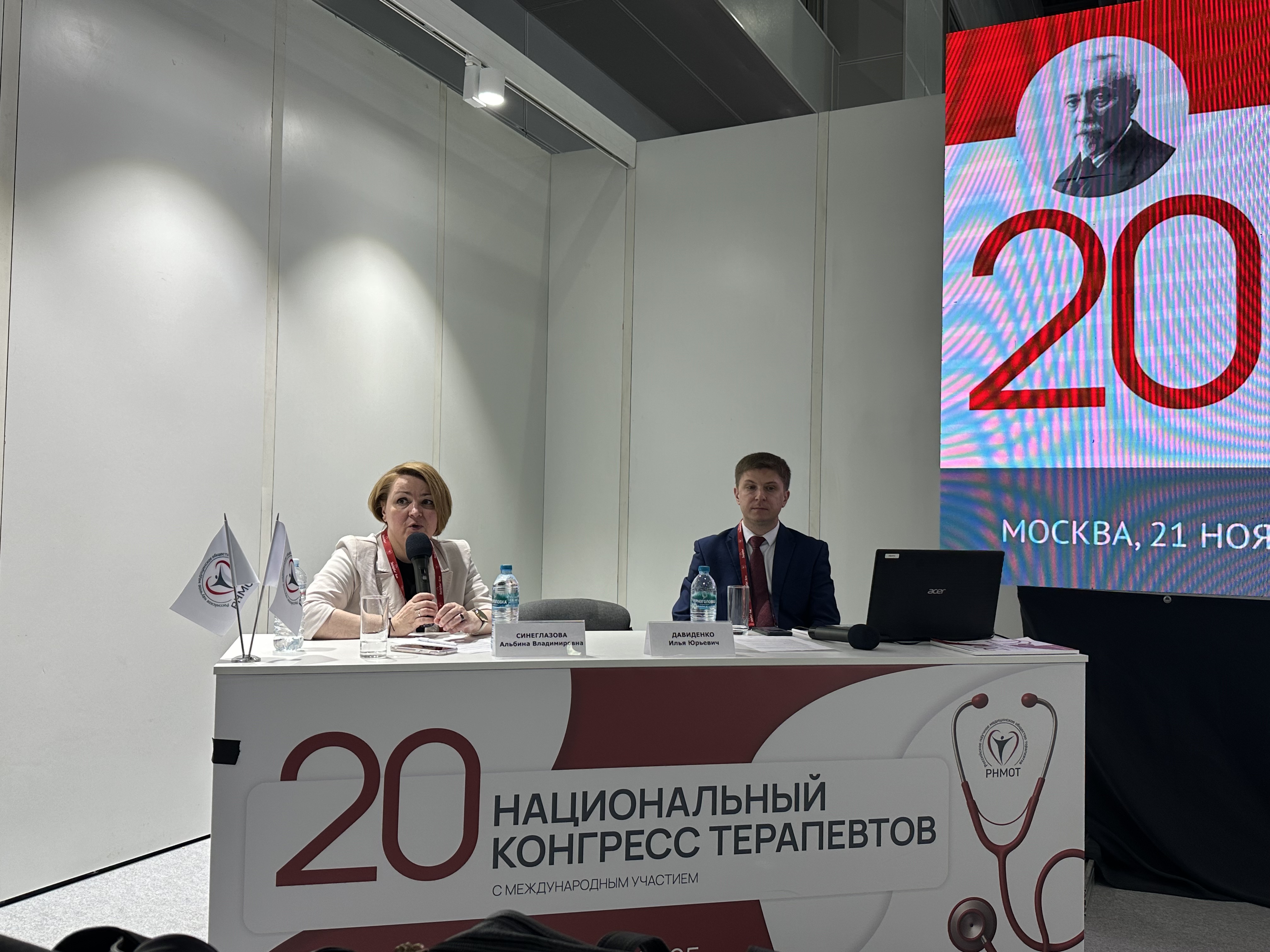 Кафедра поликлинической терапии и общей врачебной практики приняла активное участие в работе юбилейного Национального конгресса терапевтов, посвященного памяти президента РНМОТ, академика РАН, профессора, д.м.н. Мартынова Анатолия Ивановича, в г. Москва. Заведующий кафедрой, профессор Синеглазова А.В. была сопредседателем симпозиума "Кардиометаболическая профилактика. Фокус на молодой возраст", на котором были представлены два доклада по результатам кафедральной НИР : проф. Синеглазовой А.В., асс. Фахрутдиновой А.Ш. "Приверженность рекомендациям как инструмент управления течением кардиометаболических нарушений в молодом возрасте" и доцентом Парве С.Д. "Кардиоренометаболический синдром в молодом возрасте. Ключевые аспекты эффективного ведения" Также зав. кафедрой Синеглазова А.В. на симпозиуме по образованию "Терапевтические дисциплины в медицинских ВУЗах: фокус на современные аспекты образовательных технологий с позиции молодого преподавателя" представила доклад "Погружение и служение как важные подходы к подготовке пациенто-ориентированного врача". Профессор Сигитова О.Н. выступила на симпозиуме "Хроническая болезнь почек - инновации и традиции в диагностике и лечении" с докладом "ИГА-нефрит или Болезнь Берже. Новые клинические рекомендации – есть ли перспективы в улучшении прогноза заболевания?".