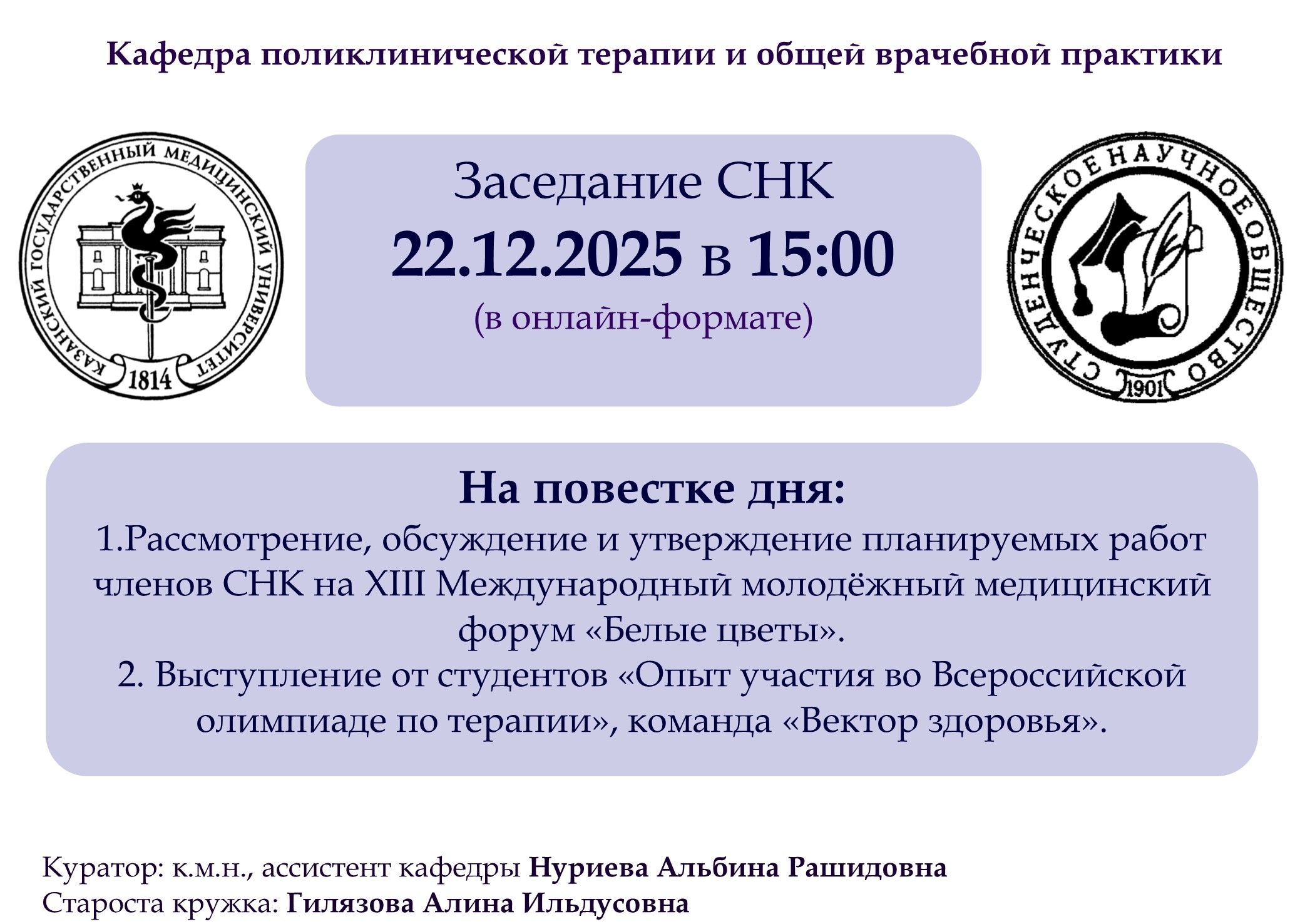 Заседание СНК "Поликлиническая терапия и общая врачебная практика" 22 декабря 2025 г.
