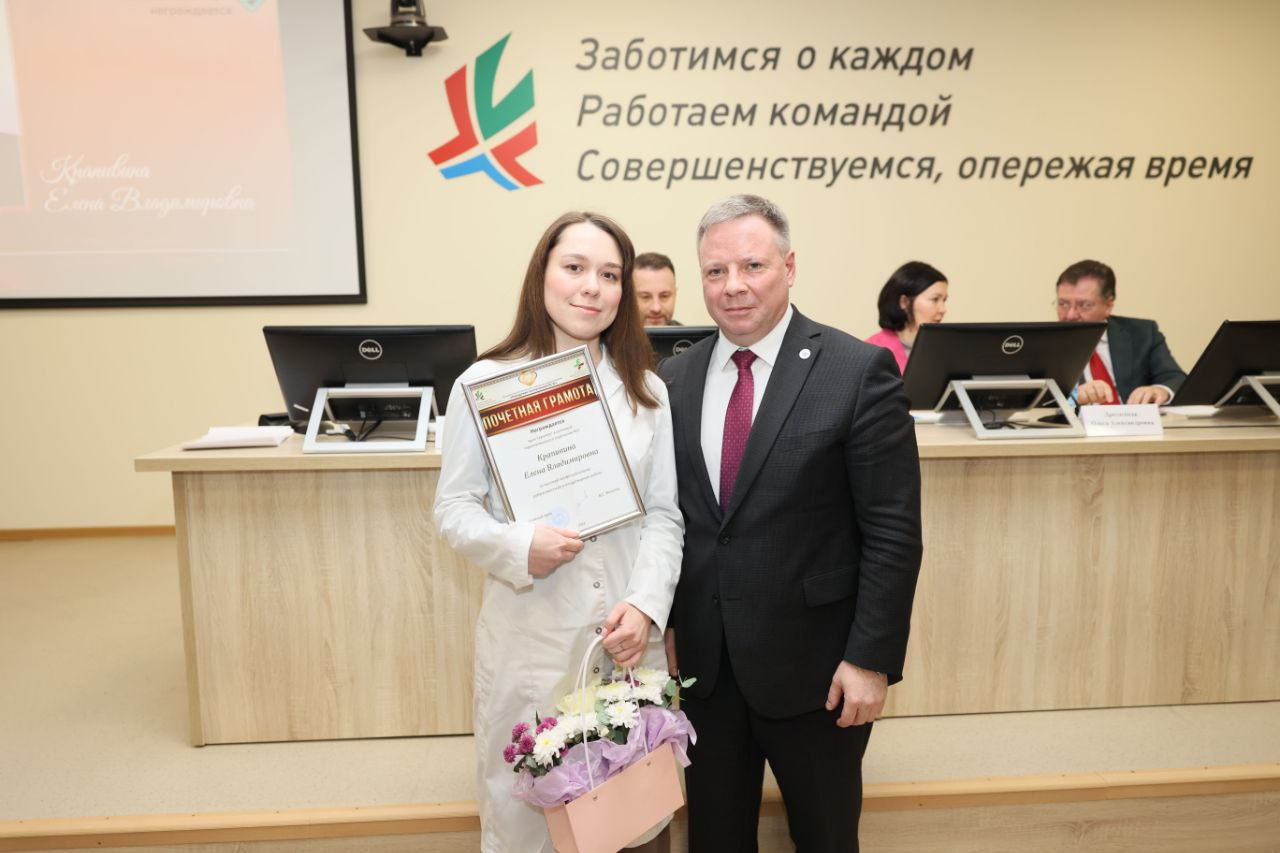 19 февраля в ГАУЗ "Городская поликлиника №21" г. Казани прошел Итоговый Медицинский Совет. На мероприятии были представлены итоги работы поликлиники за 2025 год, прошло награждение. Ординатор 2 года обучения кафедры Поликлинической терапии и Общей врачебной практики, врач терапевт участковый Крапивина Елена Владимировна была награждена Почетной грамотой от главного врача Городской поликлиники №21 за высокий профессионализм, добросовестную и плодотворную работу. Участие в работе Медсовета приняла заведующий кафедрой поликлинической терапии и общей врачебной практики Казанского ГМУ Синеглазова А.В.. Проректор Казанского ГМУ Осипов Сергей Альбертович от имени руководства университета вручил Благодарственное письмо главному врачу поликлиники Филатову В.С. и заместителю главного врача Тимеркаевой Д.Б. в связи с продуктивным тесным сотрудничеством в подготовке медицинских кадров. ГАУЗ ГП №21 всегда была крупнейшей клинической базой по подготовке врачей первичного звена как лечебного факультета, так и факультета иностранных студентов, а также ординаторов и врачей Казанского ГМУ. В этом учебном году впервые подготовку по Ознакомительной практике на базе поликлиники прошли более 40 студентов 1 курса лечебного факультета.