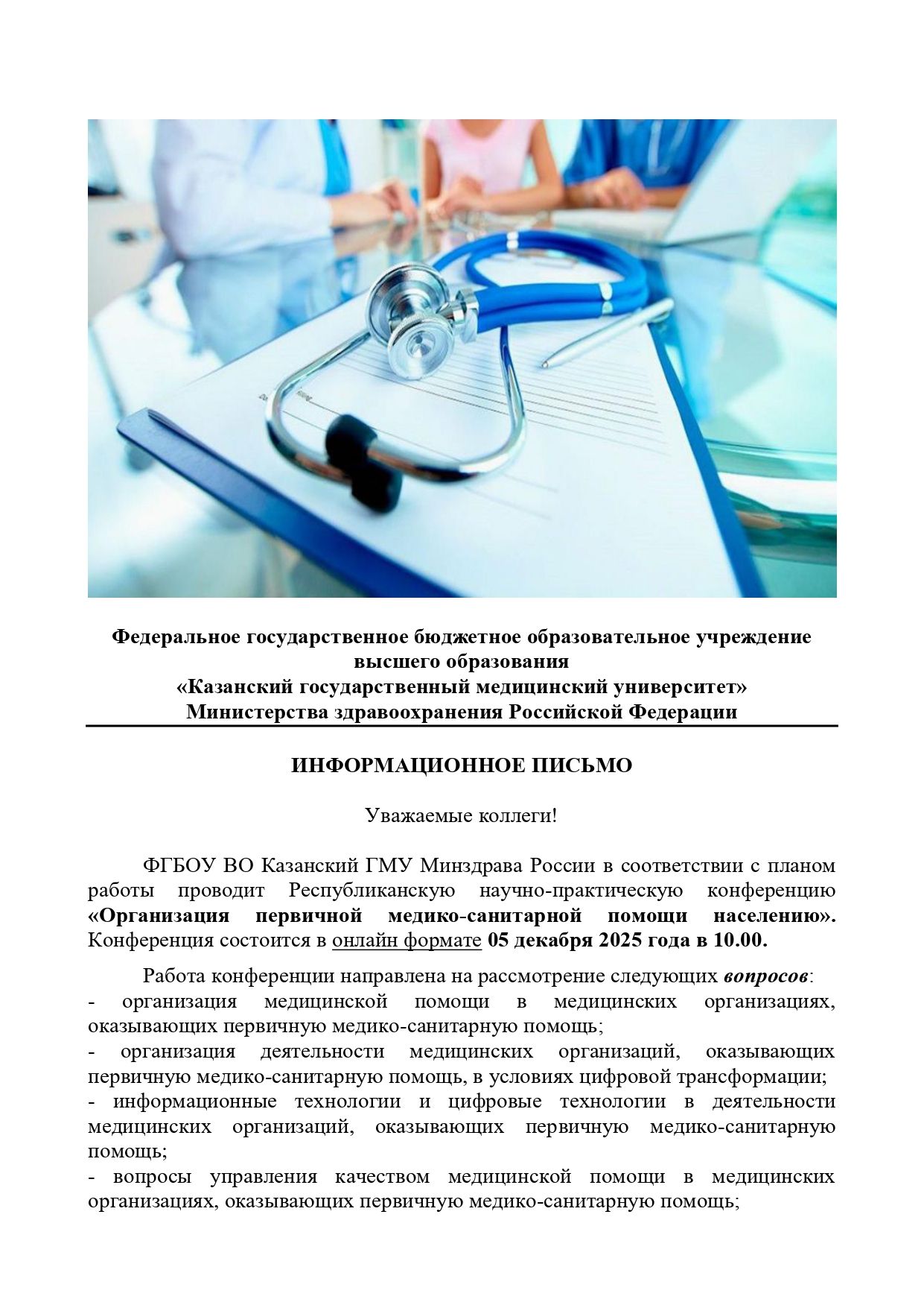 5 декабря 2025 г. состоится Республиканская научно-практическая конференция "Организация первичной медико-санитарной помощи населению", проводимая кафедрой общественного здоровья и организации здравоохранения.