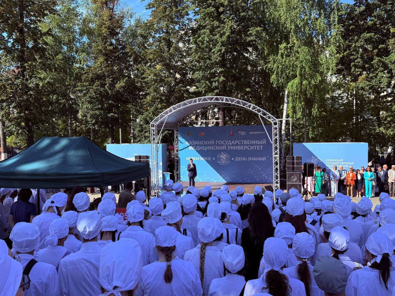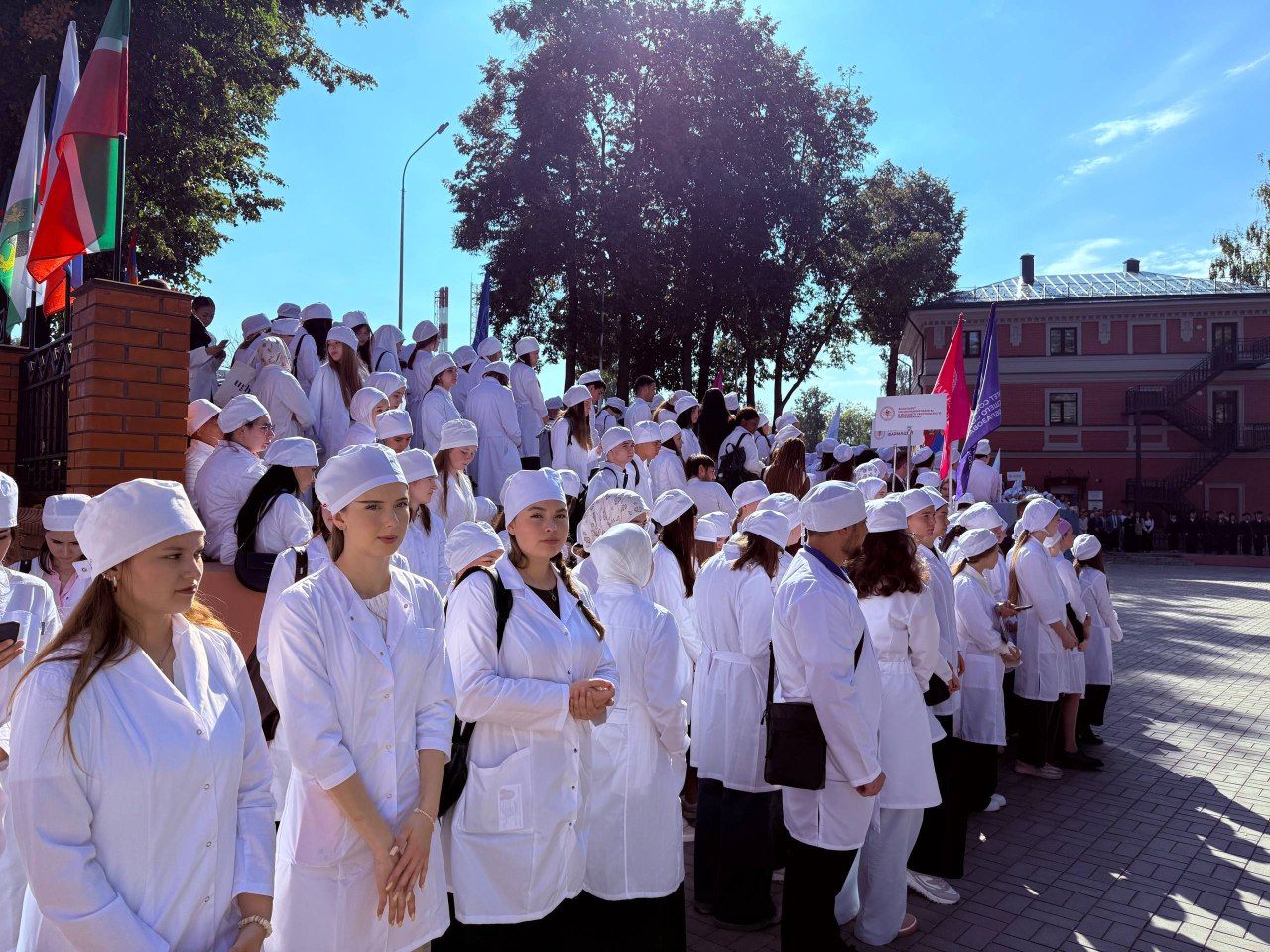 1 сентября 2025 года обучающиеся Медико-фармацевтического колледжа приняли участие в торжественном мероприятии Казанского государственного медицинского университета, посвященном Дню знаний. На торжественной линейке присутствовал Раис Республики Татарстан Рустам Нургалиевич Минниханов, который поздравил всех присутствующих с началом нового учебного года и Днем знаний.