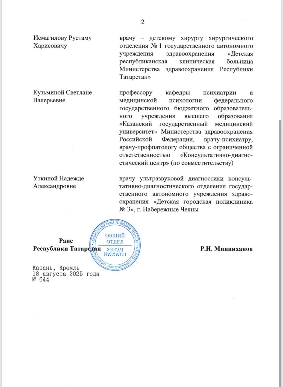 Поздравлением профессора кафедры Кузьмину Светлану Валерьевну с присуждением звания «Заслуженный врач Республики Татарстан»!