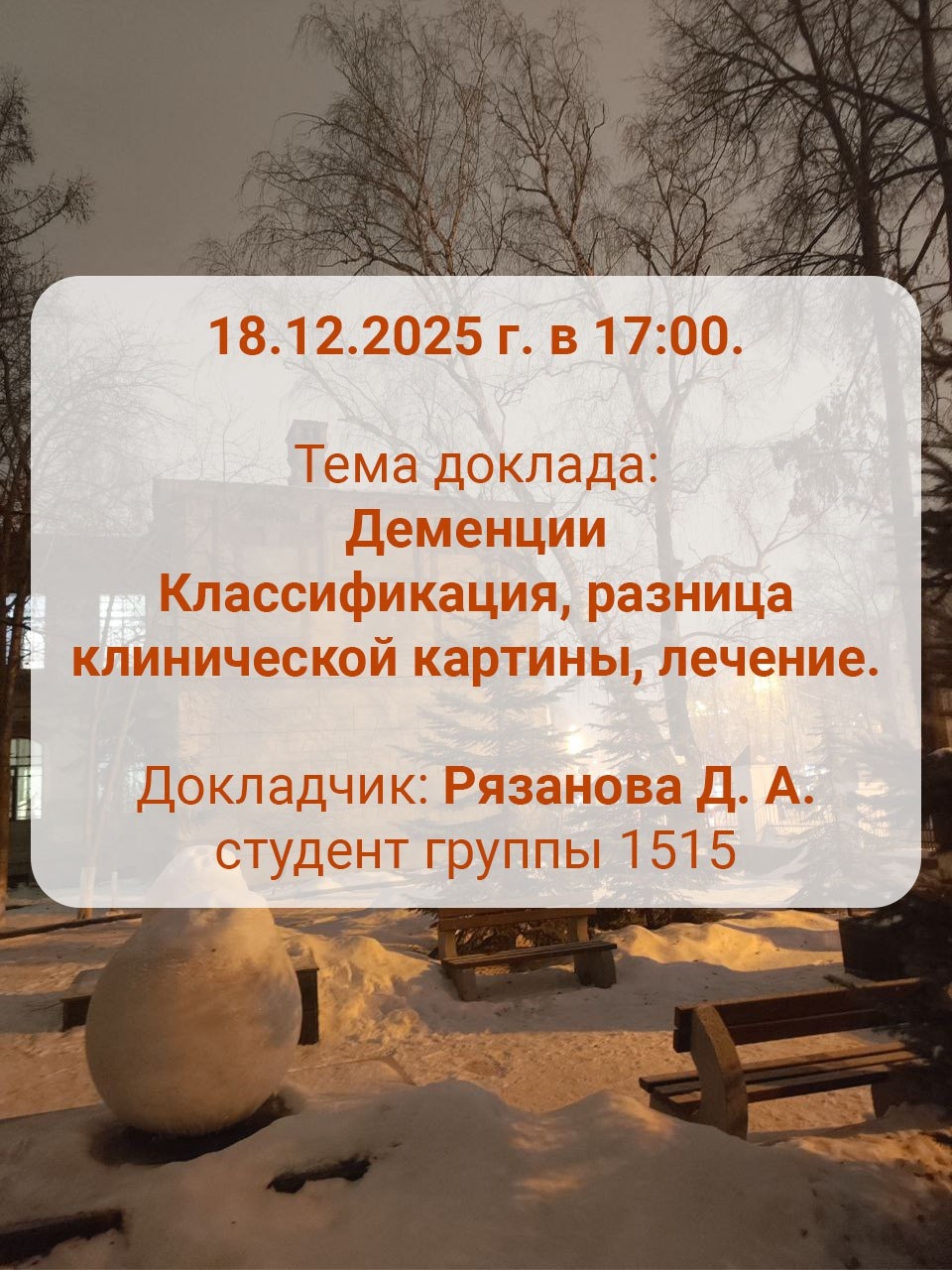 23.12.2024 17:30 РКПБ им. Акад. В.М. Бехтерева, ул. Волкова 80, лекционная аудитория |