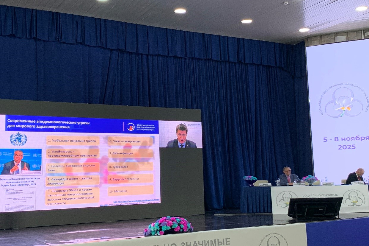 С 5 по 8 ноября 2025 года в очном формате в г. Сочи прошла XII Всероссийская междисциплинарная научно-практическая конференция с международным участием «Социально-значимые и особо опасные инфекционные заболевания». Организаторами конференции выступили Министерство здравоохранения Российской Федерации, Кубанский государственный медицинский университет» Минздрава России, Министерство здравоохранения Краснодарского края. С приветственным словом на первом пленарном заседании выступили: заместитель директора департамента организации экстренной медицинской помощи и управления рисками здоровью Минздрава России Наталья Пакскина, которая представила современное состояние по социально-значимым инфекциям в Российской Федерации; академик РАН, главный специалист по детским инфекционным болезням Минздрава России профессор Юрий Лобзин, который подробно остановился на современных угрозах, связанных с возбудителями, обладающими пандемическим потенциалом; главный специалист по инфекционным болезням Минздрава России профессор Владимир Чуланов, который представил доклад о глобальных рисках, связанных с инфекционными болезнями, и национальными стратегиями их преодоления. Член-корреспондент РАН, д.м.н., профессор, главный внештатный специалист МЗ РФ по медицинской микробиологии Припутневич Т.В. представила перспективы развития медицинской микробиологии. В рамках пленарного заседания выступил академик РАН, профессор, д.м.н., директор ЦНИИЭ Роспотребнадзора В.Г. Акимкин, который подробно рассказал о современных эпидемиологических угрозах для мирового здравоохранения и о мероприятиях, проводимых в рамках стратегии «Санитарный щит» по сдерживанию и преодолению угроз, связанных с особо опасными заболеваниями. На пленарной заседании докладчики представили последние данные об актуальных аспектах туберкулеза (Васильева И.А.), стрептококковой инфекции группы А (академик РАН Брико Н.И.), ВИЧ инфекции (Розенберг В.Я,), ИСМП (Асланов Б.И.), ботулизма (Никофоров В.В.), ОРВИ (Лиознов Д.А.), пневмококковой инфекции (Жданов К.В.), оспы обезьян (Пшеничная Н.Ю.), парентеральных вирусных гепатитов (Эсауленко Е.В.), гепатита С (Козлов К.В.) и другие.