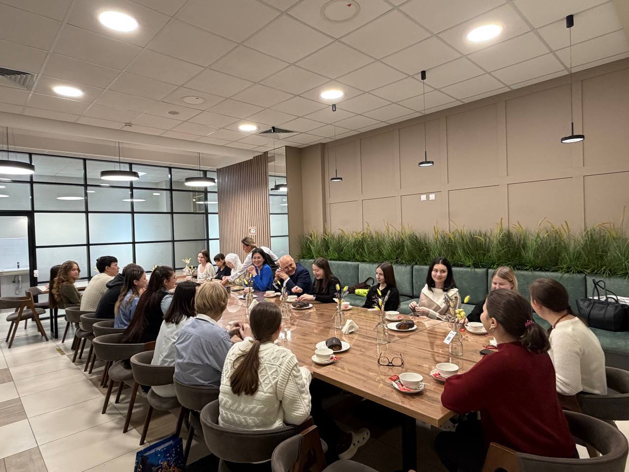 11 декабря состоялась встреча студентов 1,2 курсов с деканом медико-профилактичесокого факультета Фарид Вильямовичем Хузихановым и студенческим активом, проходившая в новом формате. Обсуждение прошло в формате круглого стола за чашкой чая, что создало непринужденную атмосферу для свободной беседы между деканом, студентами и активистами студенческого самоуправления.
