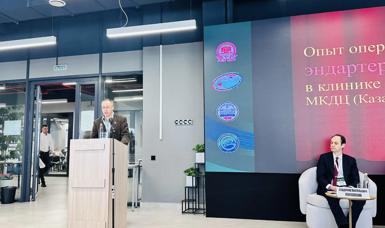 Ассистент кафедры Немировский Александр Михайлович представил итоги масштабной работы. Его доклад «Опыт операций каротидной эндартерэктомии в клинике нейрохирургии МКДЦ (Казань, 2008–2026)» охватил почти два десятилетия успешного хирургического лечения атеросклеротических поражений сонных артерий, что является ключевым методом профилактики ишемического инсульта.