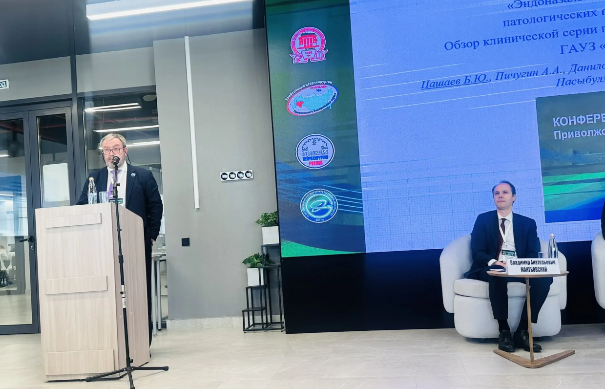 Ассистент кафедры Пашаев Бахтияр Юсуфович выступил с докладом на тему: «Эндоназальная эндоскопическая хирургия в Республике Татарстан (по материалам клиники нейрохирургии ГАУЗ «МКДЦ»)».