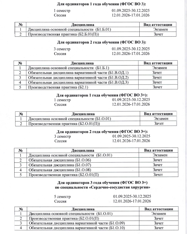 Расписание занятий ординаторов 1 года обучения на осенний семестр 2025 года