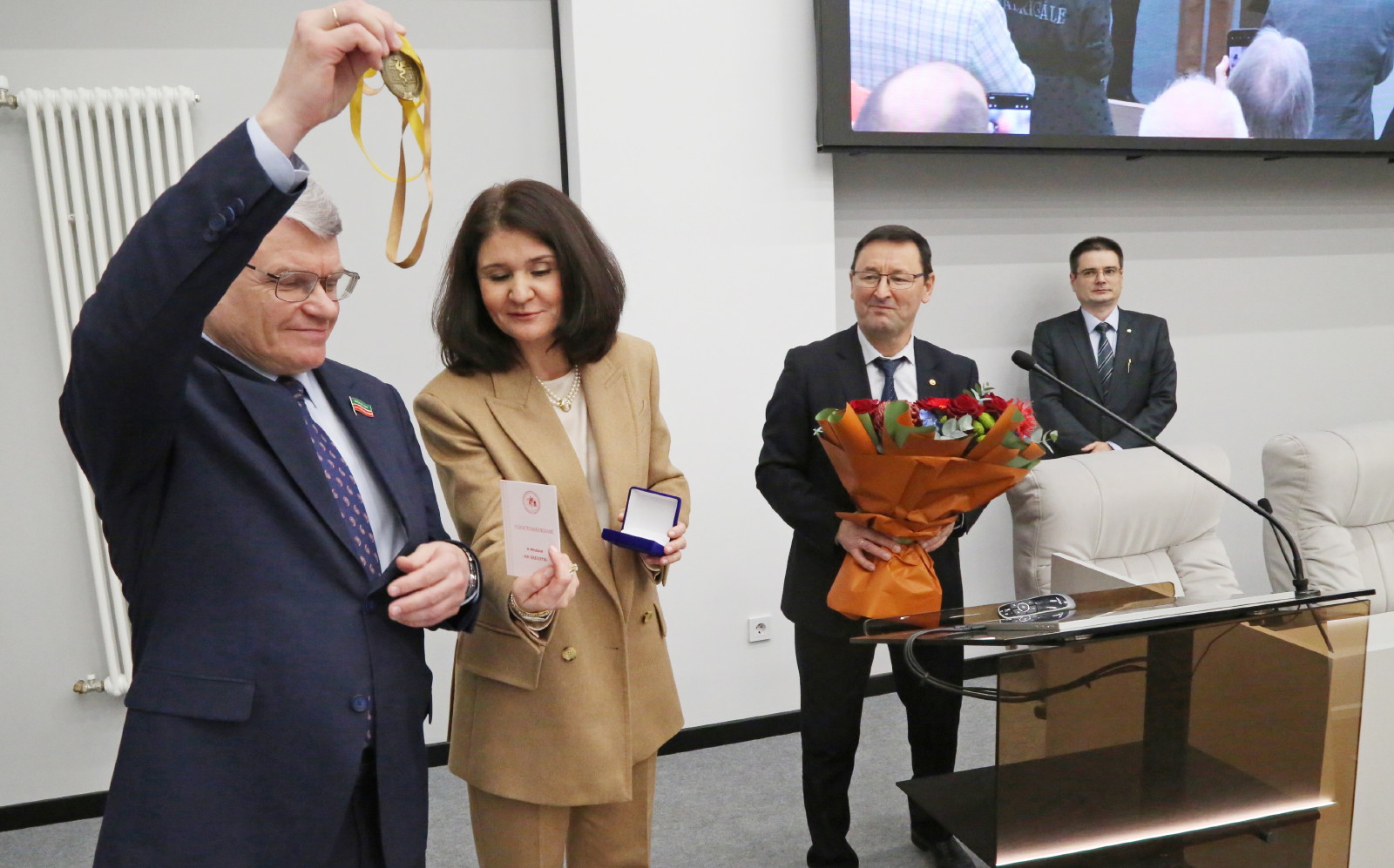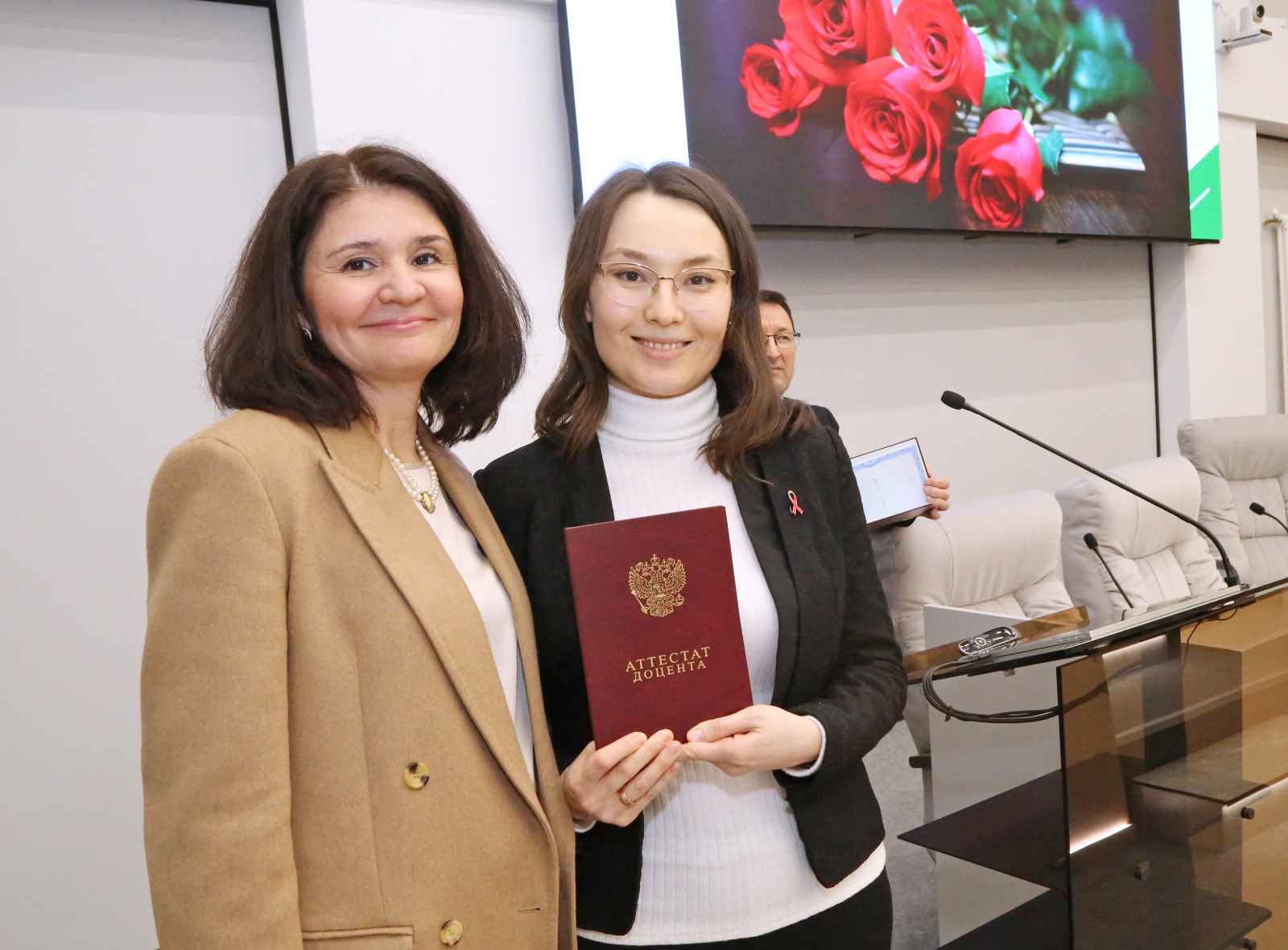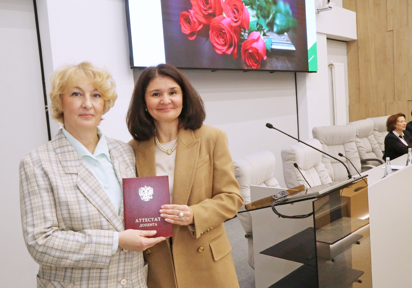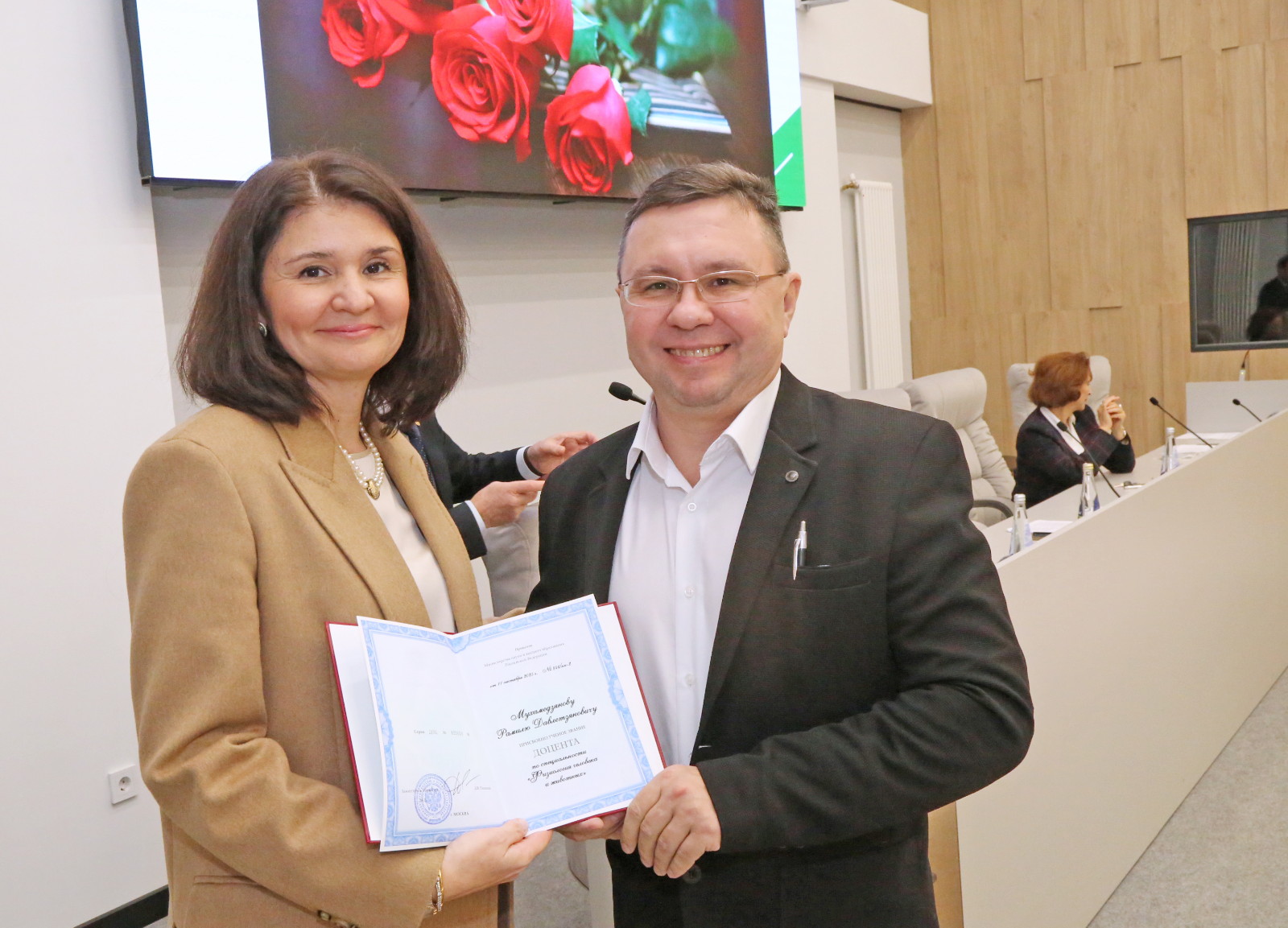 Аттестаты о присвоении ученого звания «профессор» были вручены Ирине Кравченко и Марату Мухамедьярову, ученого звания «доцент» – Саиде Аглиуллиной, Айдару Закирову, Лейсан Ибрагимовой, Елене Курмаевой, Розалии Светловой, Айгуль Мутигуллиной, Рамилю Мухамедзянову, Дине Сабировой и Ольге Торгашовой.