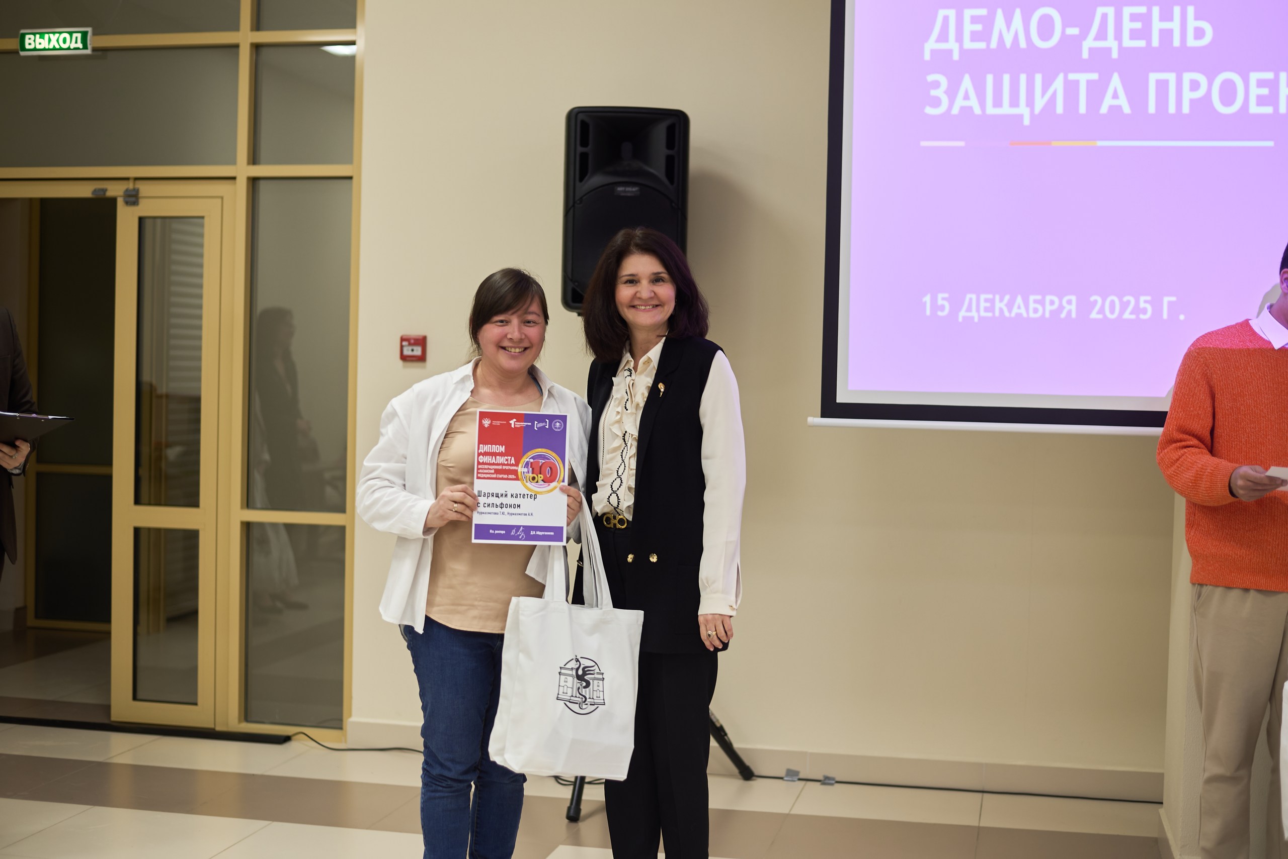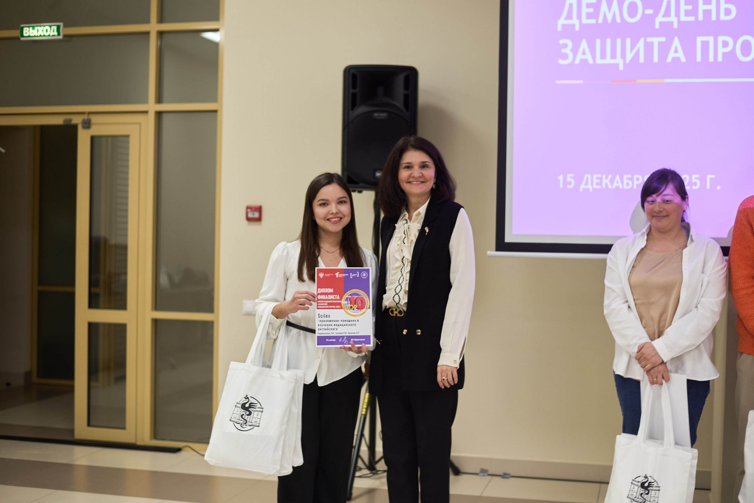 Гран-при акселерационной программы присуждено за проект «Тени эритроцитов как контейнеры для контрастных агентов», лидеры проекта Дарья Салимова и Дарья Грибанова.
