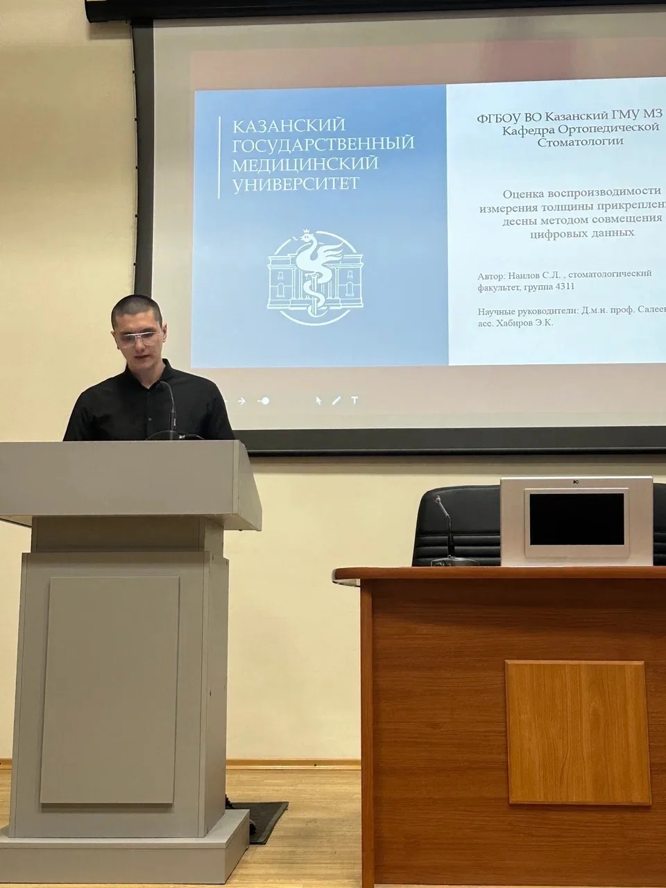 Первое место занял студент стоматологического факультета Казанского ГМУ Наилов Салават (3 курс) с докладом «Оценка воспроизводимости измерения толщины прикреплённой десны методом совмещения цифровых данных».