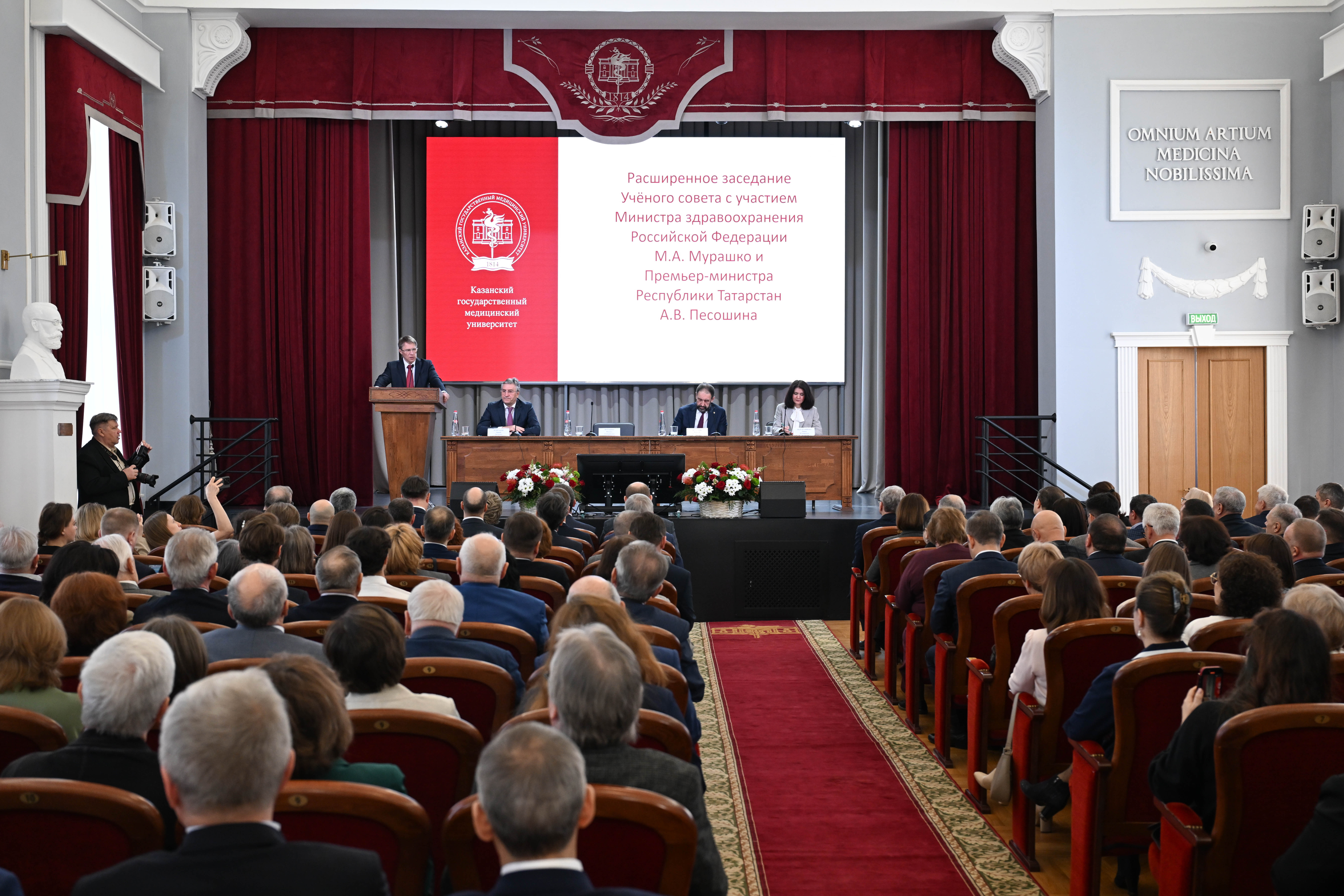 Алексей Песошин и Михаил Мурашко представили коллективу КГМУ нового исполняющего обязанности ректора