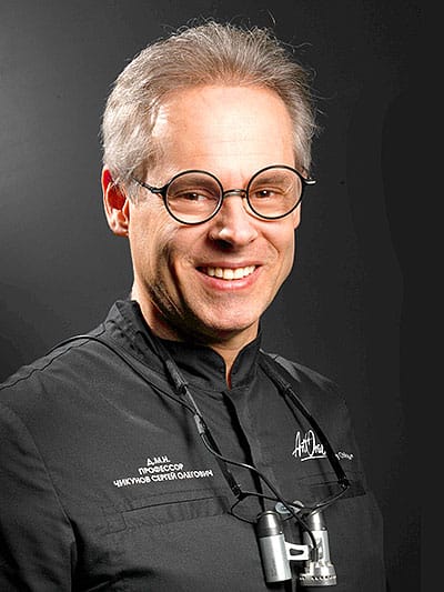 ЧИКУНОВ СЕРГЕЙ ОЛЕГОВИЧ Образование: высшее, окончил с отличием ММСИ им. Н.А. Семашко в 1988 году. Ученая степень: доктор медицинских наук, защита кандидатской диссертации по теме: «Применение металлокерамических коронок при аномалиях развития и положения передних зубов у взрослых» (1994 г.), защита докторской диссертации по теме: «Повторная реабилитация пациентов после ранее проведенного ортопедического стоматологического лечения» (2014 г.).
