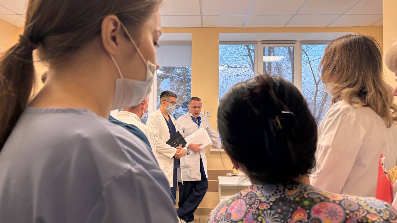 В работе принимают участие сотрудники кафедры (доцент Шакурова Д.А., ассистент Салимов Л.И.), начмед ГАУЗ ЦГКБ №18 им.проф. К.Ш. Зыятдинова Рахимуллин И.М., врачи-оториноларингологи и ординаторы. Формат живой клинической работы позволяет выстраивать преемственность поколений специалистов, формировать клиническое мышление и развивать профессиональные компетенции молодых врачей, обеспечивая высокий уровень подготовки и качества медицинской помощи.
