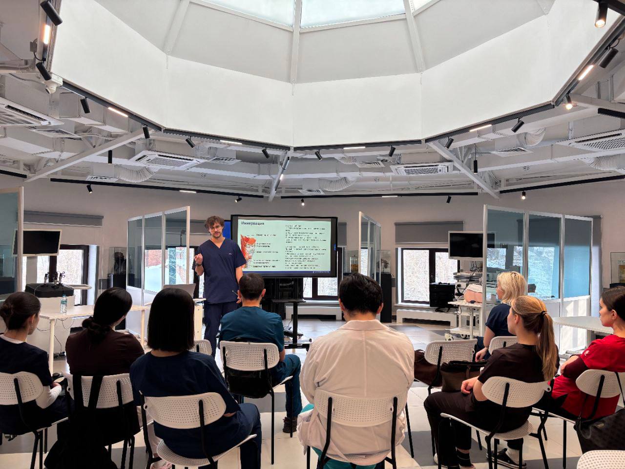 В ходе занятия были подробно рассмотрены показания и противопоказания к проведению трахеостомии, анатомические ориентиры, этапы оперативного вмешательства, возможные интра- и послеоперационные осложнения, а также принципы ведения пациентов в послеоперационном периоде. Особое внимание уделено алгоритмам действий при неотложных состояниях, требующих обеспечения проходимости дыхательных путей.