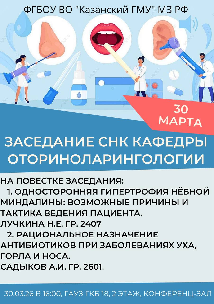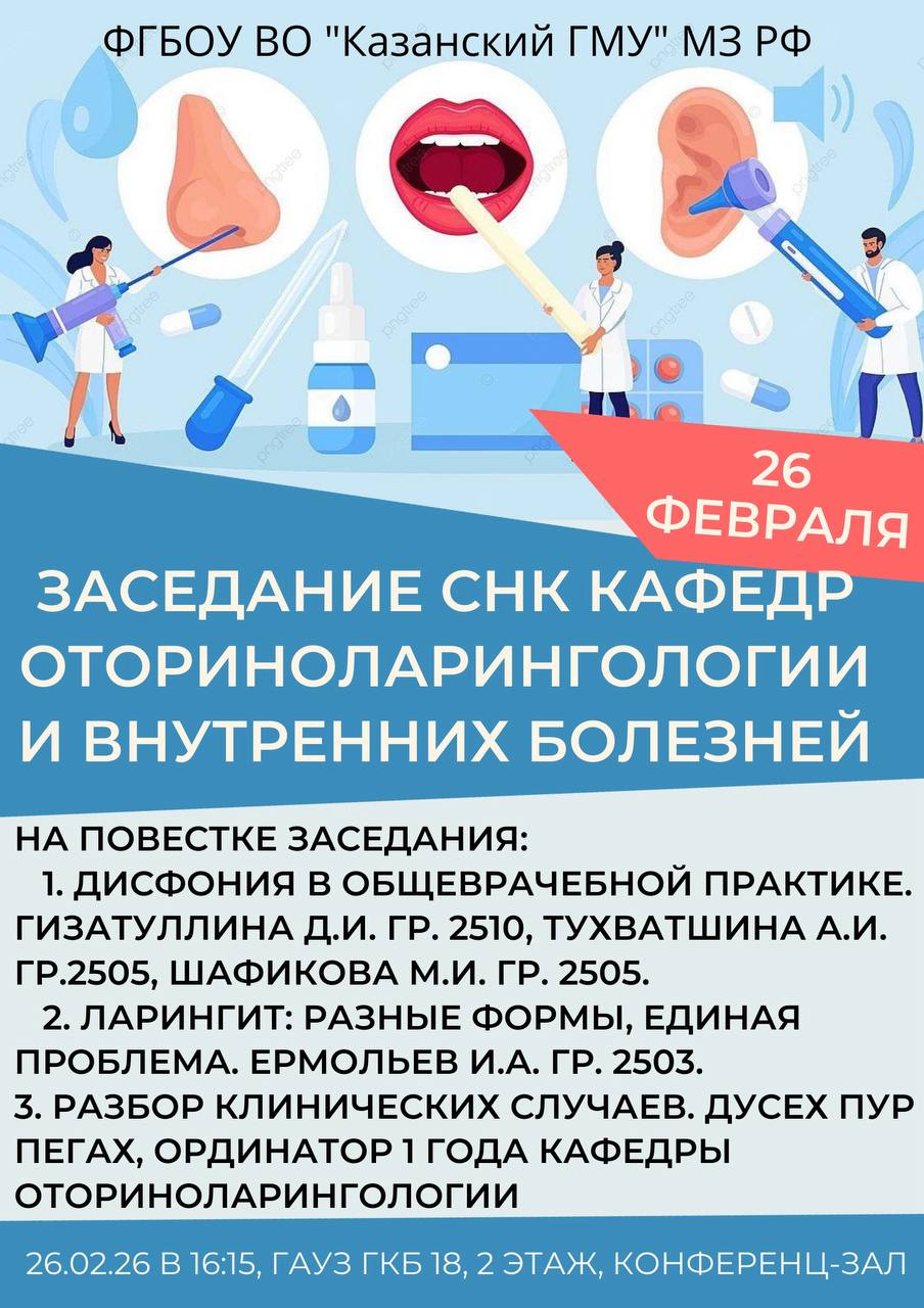 Приглашаем всех желающих на наше заседание СНК по оториноларингологии 26 февраля в 16:15 ❗️ В этот раз проводим заседание совместно с кафедрой внутренних болезней ✅
