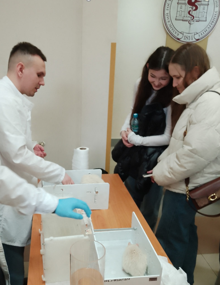 19.04.2026 в стенах Казанского ГМУ прошло ежегодное мероприятие для абитуриентов - День открытых дверей. Члены студенческого научного кружка по фармакологии Камбеев Динар Ильсурович (гр.1302), Ефимов Алексей Викторович (гр. 1301), Нодирова Сабрина Азамжоновна (гр. 2302), Славкина Алина Александровна (гр. 2302), а также старший преподаватель кафедры, к.м.н. Никитин Дмитрий Олегович наглядно демонстрировали основные научные направления кафедры. Особое внимание уделялось аспекту поведенческой фармакологии, а именно методикам, позволяющих проводить оценку различных поведенческих реакций лабораторных животных, для чего гостям мероприятия были показаны модели «Открытое поле», «Поведенческое отчаяние», а также «тест Каталепсия».