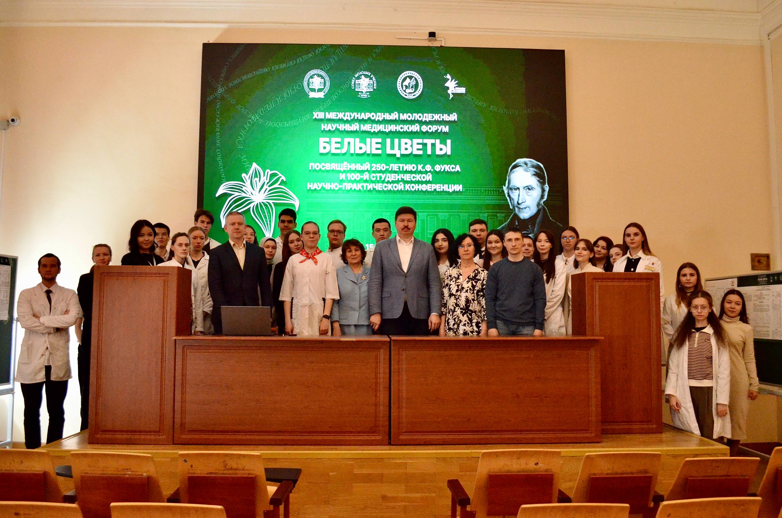 16 апреля состоялась 100-ая Международная студенческая научно-практическая конференция в рамках форума «Белые цветы», посвящённого 250-летию К.Ф. Фукса и 100-й студенческой научно-практической конференции. На базе кафедры нормальной физиологии проходила работа секции «Физиология и экспериментальная медицина». Заседание секции открывал заведующий кафедрой, д.м.н., проф. Мухамедьяров М.А. Всего было презентовано 13 устных и 9 стендовых докладов.