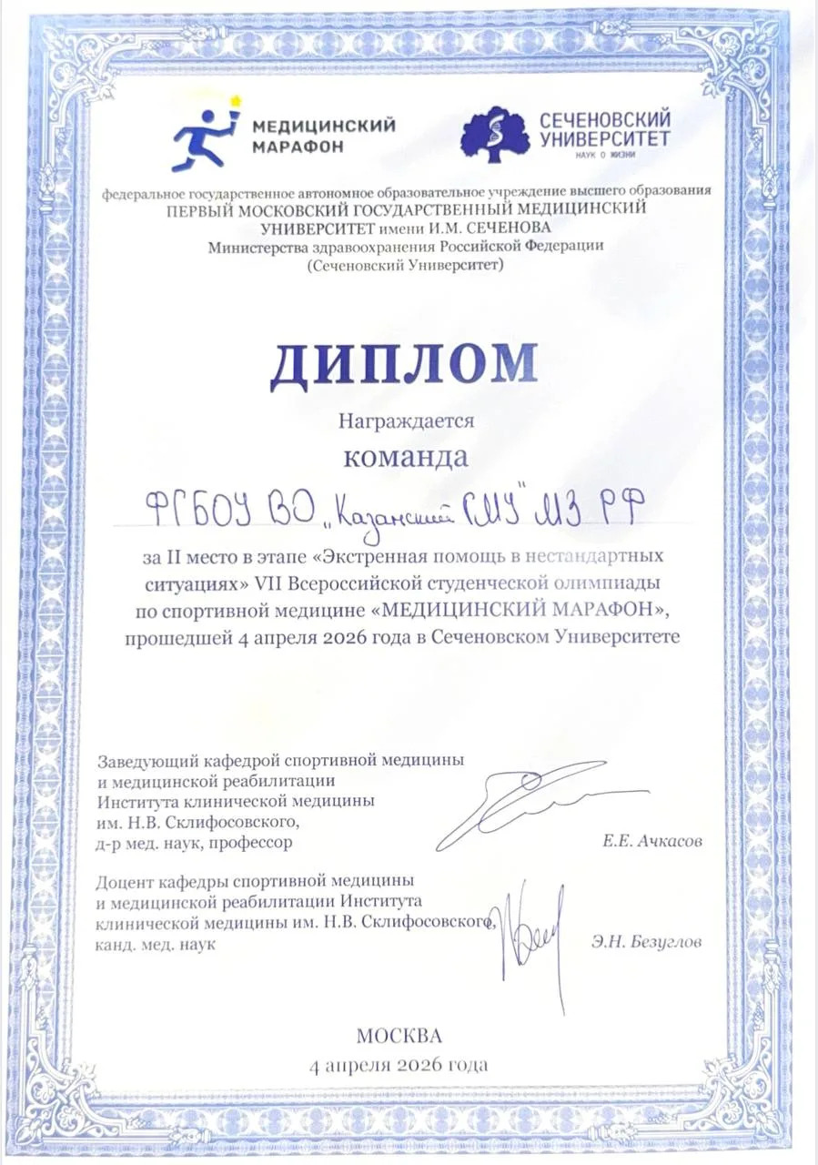16 апреля 2026 года сотрудники кафедры реабилитации и спортивной медицины КГМУ Старостина Гузель Хамитовна и Дёмин Тимур Викторович провели обучающее мероприятие для медицинских сотрудников ГАУЗ "Лениногорская ЦРБ". На мероприятии были рассмотрены вопросы ведения пациентов в остый период после инсульта и на амбулаторно-поликлиническом этапе. Кроме того, отдельная секция была проведена для населения по профилактике инсульта.