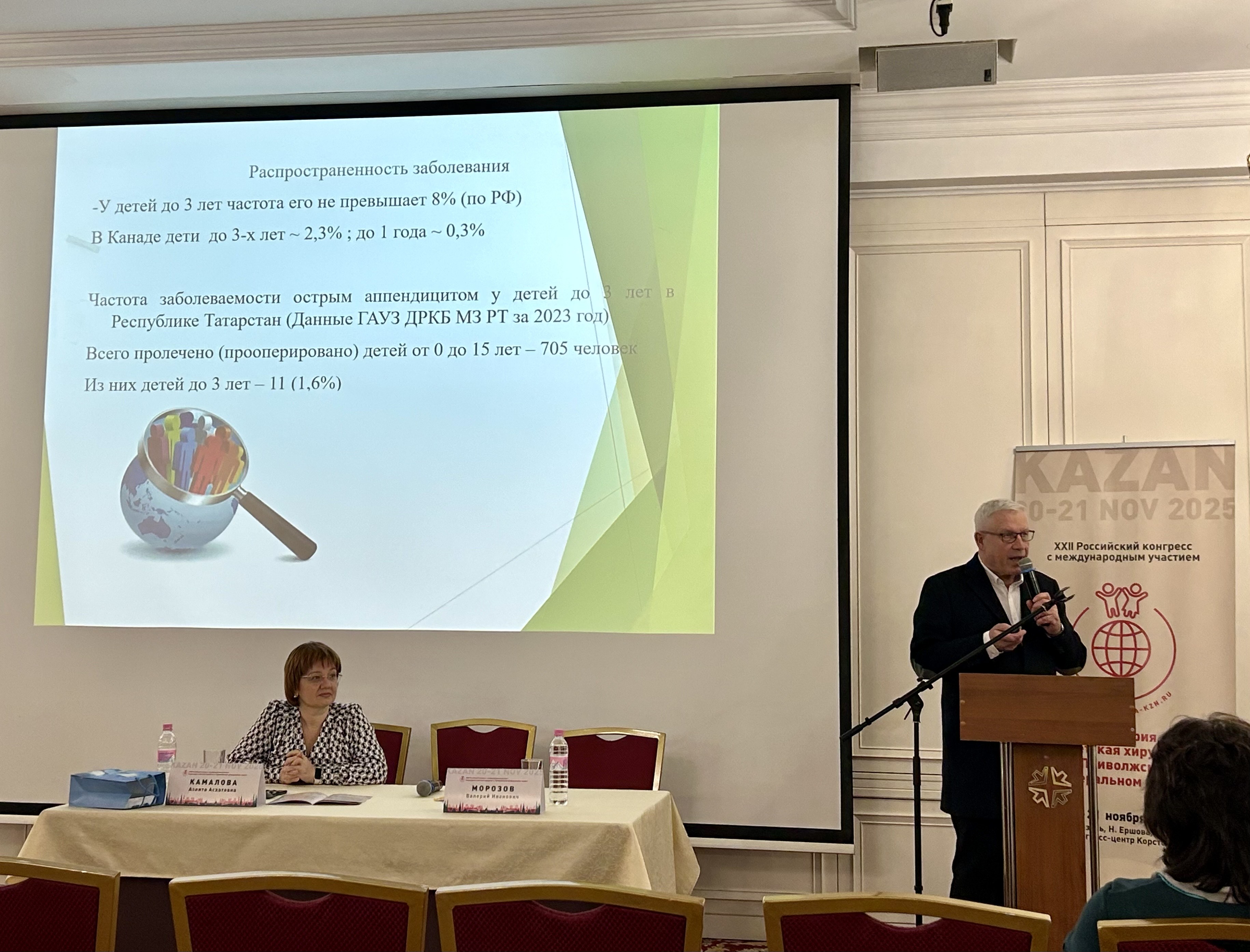 20-21 ноября 2025 в Казани прошел XXII Российский конгресс с международным участием «Педиатрия и детская хирургия в Приволжском федеральном округе». В рамках двухдневного конгресса состоялась ХIV Конференция детских гастроэнтерологов ПФО с симпозиумами по микробиому, боли в животе у детей и гастроэнтерологической практике от амбулаторного до стационарного звена. На симпозиумах была подчеркнута значимость мультидисциплинарного подхода в диагностике и лечении заболеваний ЖКТ у детей, особенностей ведения сложных клинических случаев и межведомственного взаимодействия специалистов. Обсуждены современные подходы к коррекции микробиома и профилактике антибиотико-ассоциированных нарушений, а также актуальные методы лечения боли в животе у детей. Особое внимание было уделено внедрению новых клинических рекомендаций, новейших диагностических технологий и методов нутритивной поддержки. В качестве модераторов и спикеров выступили: