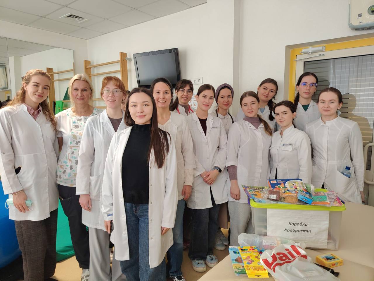Сегодня студенты группы 2602 с преподавателем к.м.н. доцентом кафедры госпитальной педиатрии приняли участие в акции пульмонологичечского отделения ГАУЗ ДРКБ МЗ РИ "коробка храбрости" Пополнив ее подарками для маленьких пациентов!