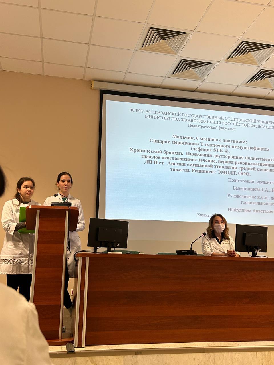 Сегодня в актовом зале ДРКБ прошла клиническая конференция по разбору пациента с первичным иммунодифицитом. Докладчики студенты группы 2602 Бардетдинова Г. А., Валиева Р. И. Ведущий преподаватель к.м.н., доцент кафедры Ишбулдина А. В. Совместно с зав. Кафедрой госпитальной педиатрии, профессорско-преподавательского состава разобрали особенности клинического течения заболевания, диагностики и тактику ведения.