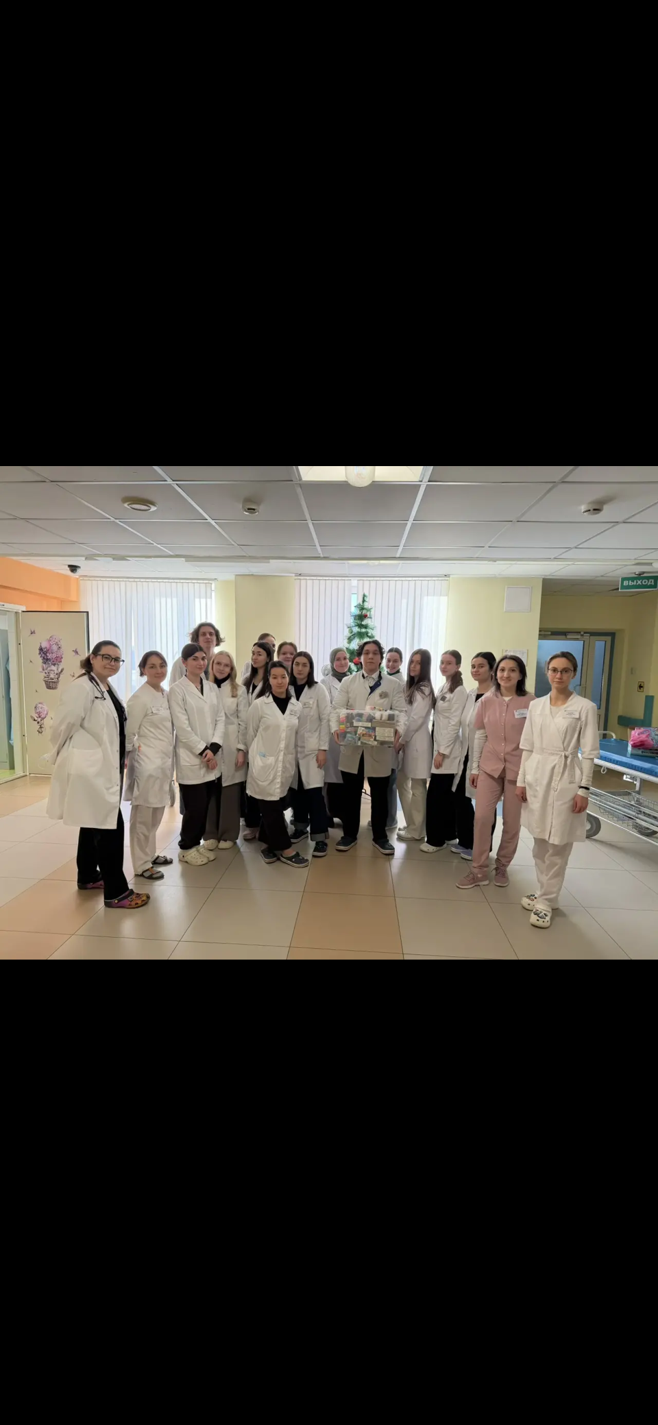 В преддверии Нового года студенты группы 2507 педиатрического факультета посетили пациентов гастроэнтерологического отделения. Ребята поздравили детей с праздником и пополнили «Коробку храбрости» полезными и развивающими игрушками, которые помогают маленьким пациентам легче переносить лечение и медицинские процедуры.