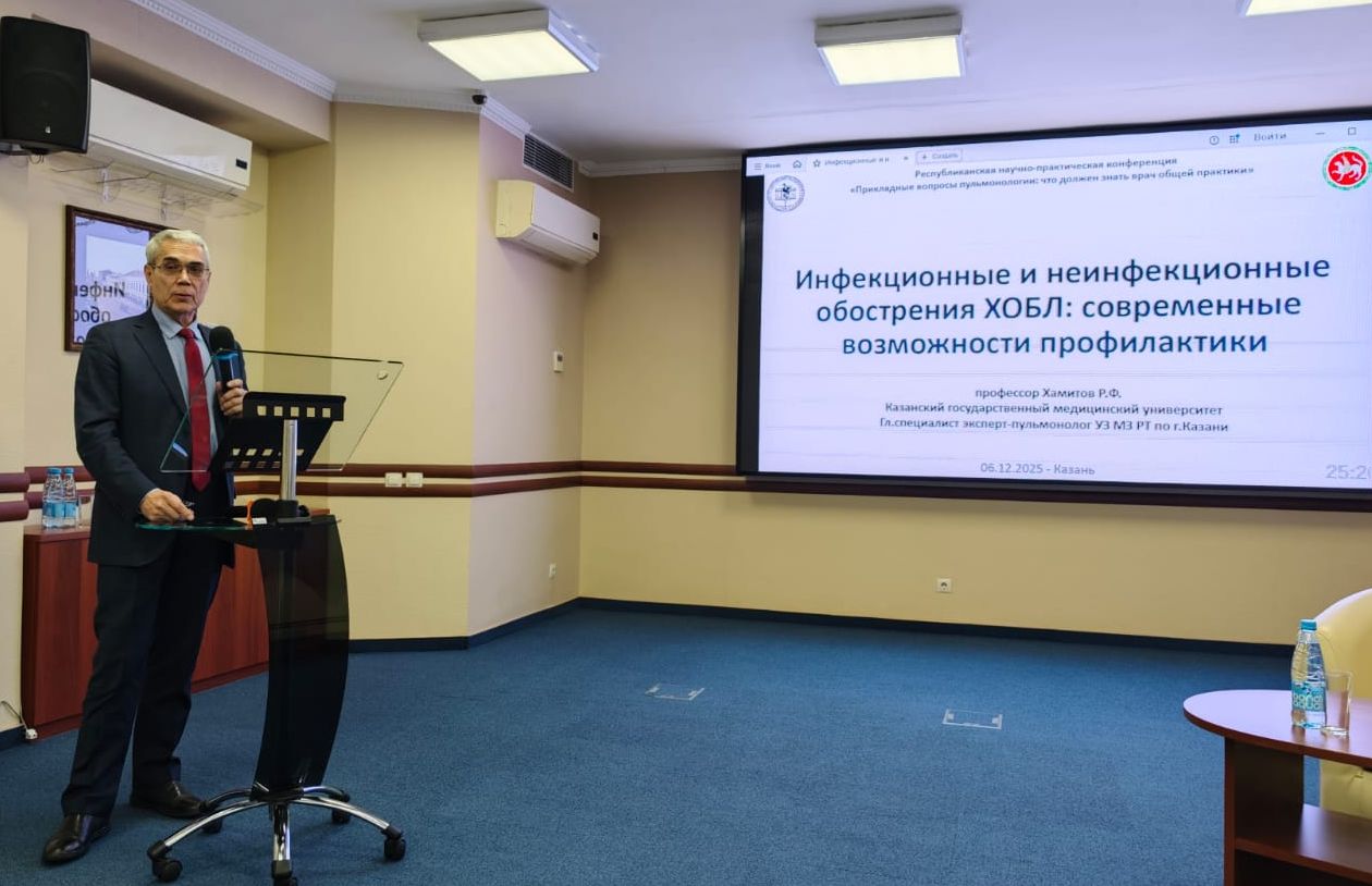 06.12.2025 в Казани по плану МЗ РТ, ФГБОУ ВО Казанский КГМУ Минздрава России и Татарстанского отделения Российского Респираторного общества в гибридном формате прошла Республиканская научно-практическая конференция «Прикладные вопросы пульмонологии: что должен знать врач общей практики», вызвавшая большой интерес практических врачей: пульмонологов, аллергологов, терапевтов, врачей общей практики. Конференцию открыла главный пульмонолог Минздрава Татарстана Е.В.Дьякова. В работе конференции принял участие проф. Р.Ф.Хамитов, выступивший с двумя докладами, посвященными вопросам профилактики обострений ХОБЛ и амбулаторного ведения внебольничных пневмоний. Аудитория принимала активное участие в обсуждении выступлений докладчиков.