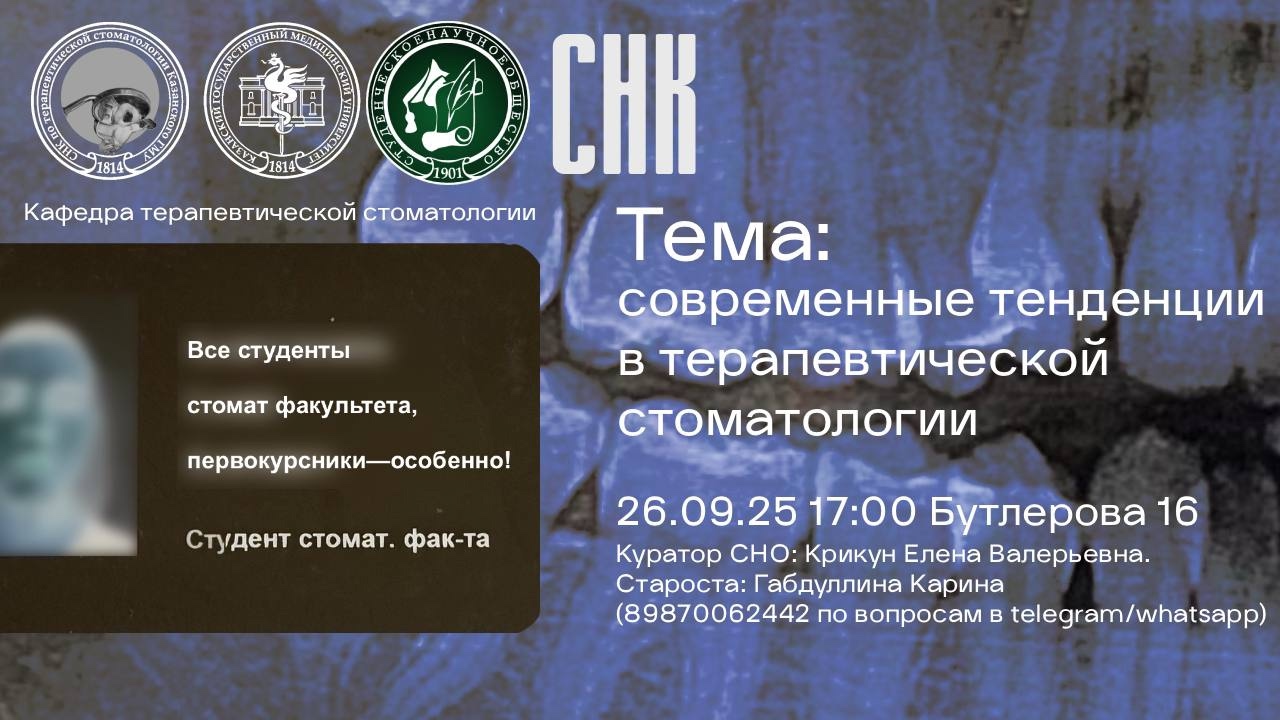 Приглашаем вас на первое заседание Студенческого научного кружка по терапевтической стоматологии в 25/26 учебном году!
